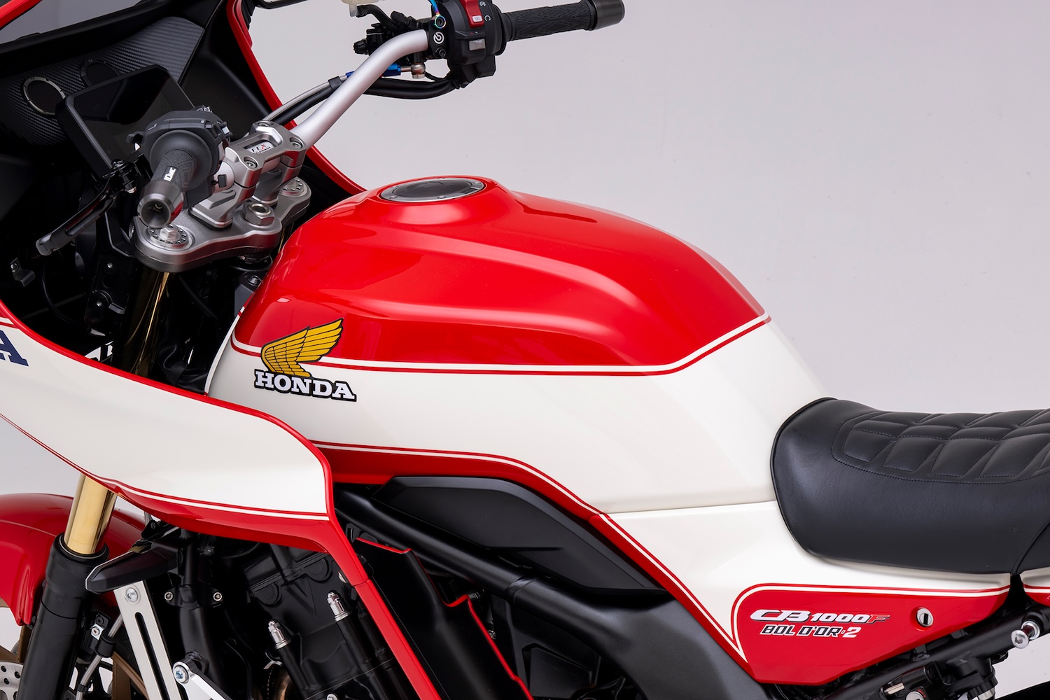為了重現當年「Bol d'Or 2」的精神,PLOT 甚至在引擎兩側比照當年的配置加入了側擾流罩與腿部護板,雖然現代引擎水箱與管路更加複雜,但 PLOT 透過精準的支架設計避開了散熱死角,讓這台 CB1000F 遠看就像是一台從 80 年代耐久賽場直接穿越過來的工廠賽車,視覺張力直接拉滿。