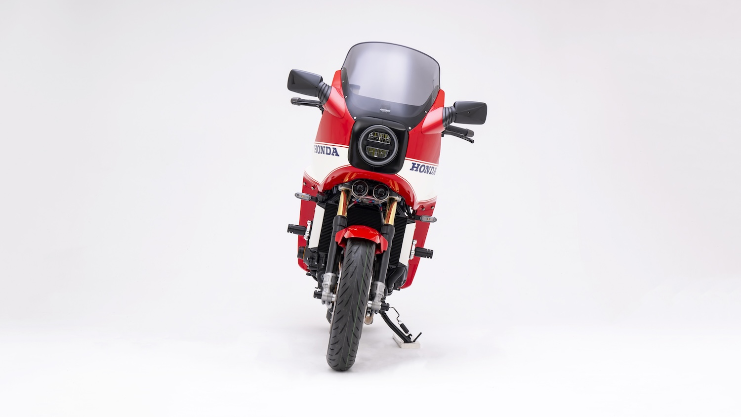 最神的地方在於,他們成功將 CB1000F 那顆現代圓形 LED 頭燈完美塞進這具老罩子裡,搭配 MRA 復刻的燻黑風鏡,那種屬於 80 年代全整流罩重機的霸氣視覺,在 2026 年的車架上竟然毫無違和感。