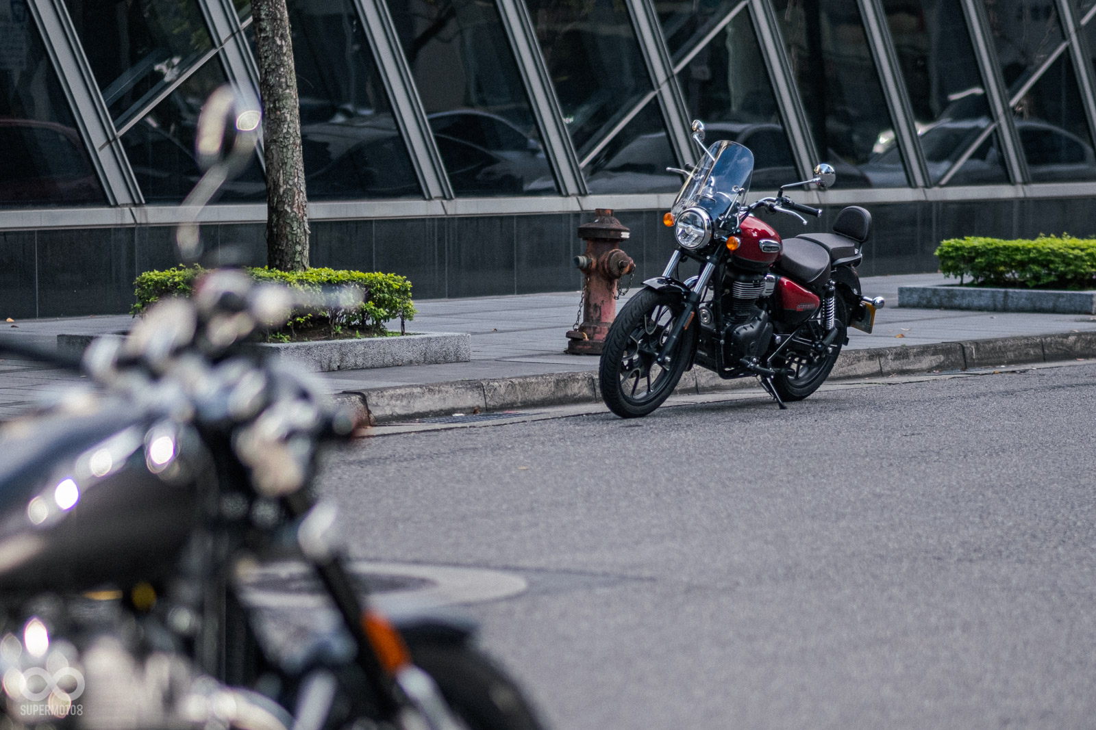 甚至在移動到山路的過程中,我更認為市區是 Meteor 350 不容忽略的一大優勢,單缸的輕盈感、纖細的車身、舒適的巡航車騎乘姿勢,都打破過往你對於「騎重機」三個字可能產生的負擔,恰到好處的動力搭配隨心所欲地畫過每個街角,作為天天使用的代步夥伴也相當完美。