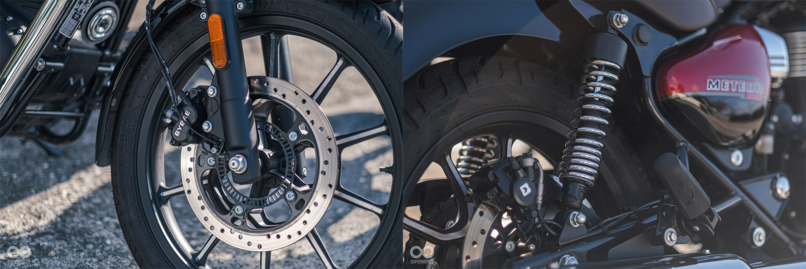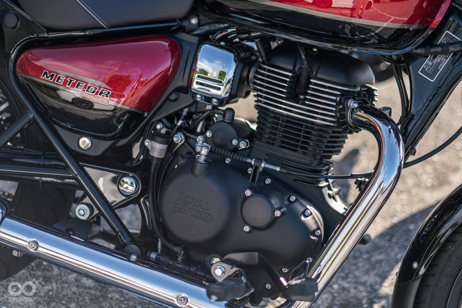 Meteor 350 搭載代號為 J 系列的 349c.c. 氣冷單缸引擎,能在 6,100 rpm 輸出 20.2 bhp 最大馬力,並在 4,000 rpm 爆發 27 Nm 的扭力,這具引擎最大的特色就是運轉精緻度極高,震動抑制相當出色。