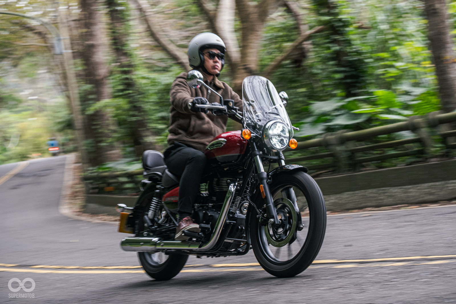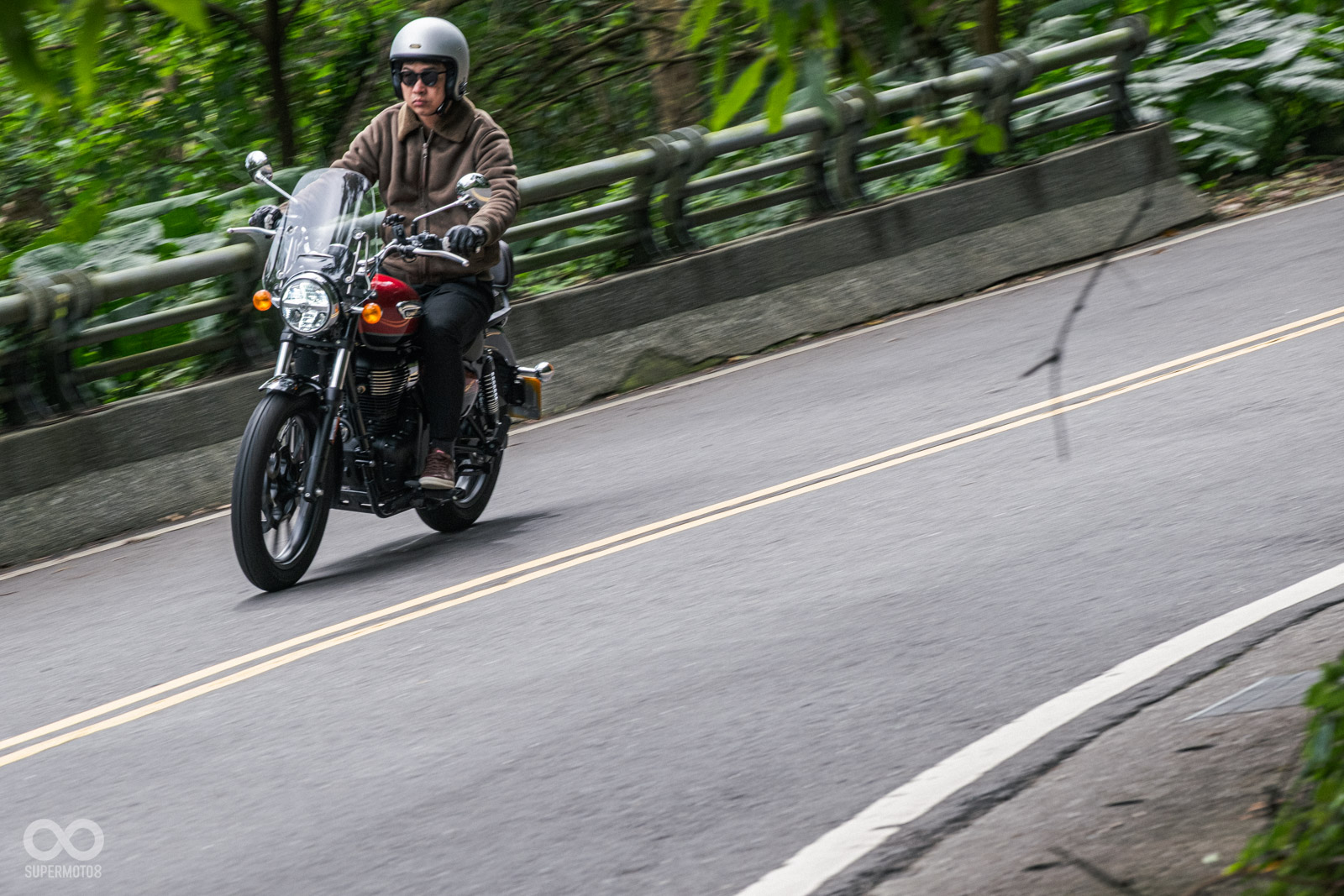 上一次接觸 Meteor 350 時,僅在市區與堤外道路淺嚐即止,這次我們決定玩點不一樣的,將場景拉到五股觀音山;老實說,出發前我對於這輛車重來到 190 公斤、馬力僅 20 匹的傢伙跑山路是抱持著懷疑態度的。然而,實際騎乘上路後,Meteor 350 狠狠地打臉了我的刻板印象。