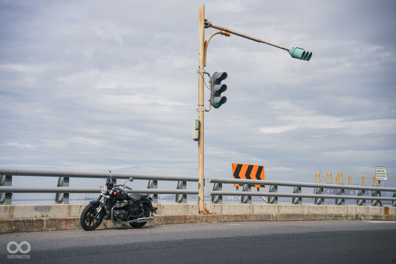 如果說 Meteor 350 是山道裡的優雅紳士,那麼 Super Meteor 650 就是專為公路旅行而生的硬漢,在市區或狹小山路中,Super Meteor 650 較長的軸距與較為舒展的騎姿可能會讓人覺得有些施展不開,甚至稍顯彆扭,但當我們一駛入西濱快速道路,這台車彷彿就像解開了封印一般,整台車的動態瞬間活了起來。