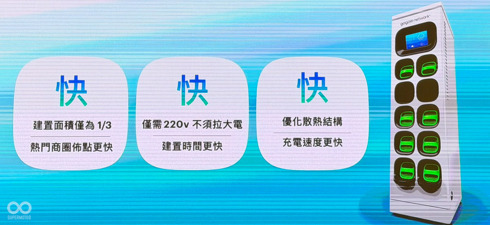 GoStation Q 即將誕生 (2027): 儘管大規模導入的時間點設在 2027 年,但全新設計的「GoStation Q 換電站」預計將在未來兩年內震撼登場。這種換電站擁有三大特點:1.體積只有過往1/3,熱門商圈佈點更快 2.僅需220V電力線路、揮別過往需要申請大電手續 3.充電更快,散熱更好。這款換電站未來也會沿用到越南市場。