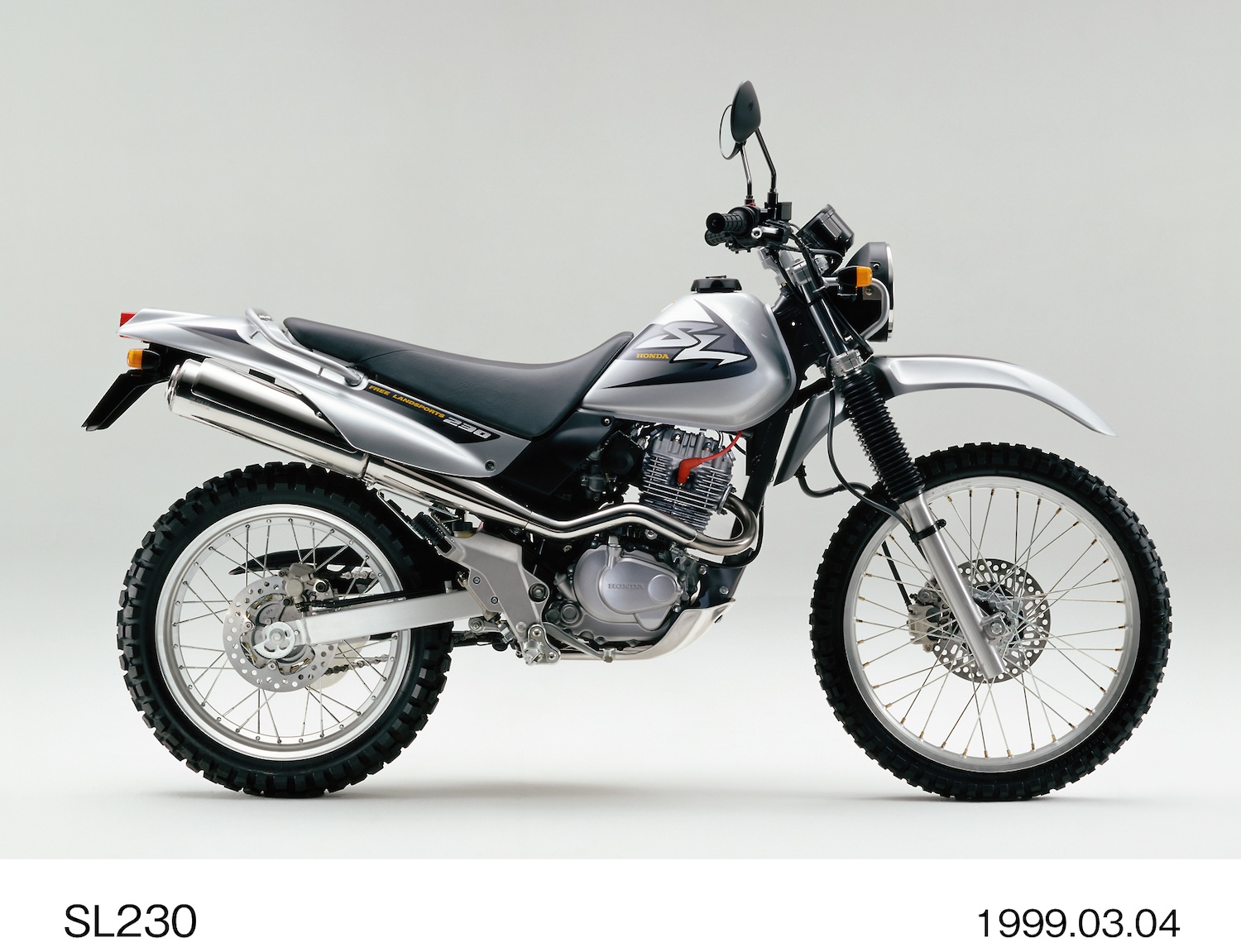 Honda 在 1997 年發表的 SL230,則展現了另一種優雅的探險方式,它使用了極其耐用的 223cc 氣冷單缸引擎,輸出滑順且運轉品質細膩;SL230 擁有四台中最低的 805mm 座高與僅 106kg 的羽量級身軀,其設計語彙更偏向都會街車。