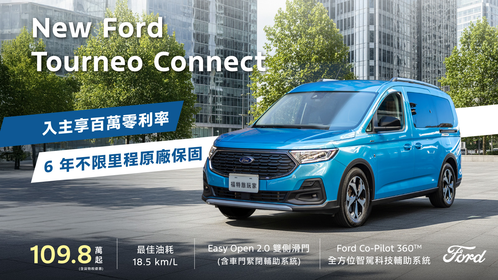- 註四:6年原廠保固,係指New Ford Tourneo Connect福特旅玩家享新車3年保固外加3年不限里程加值型延長保固。