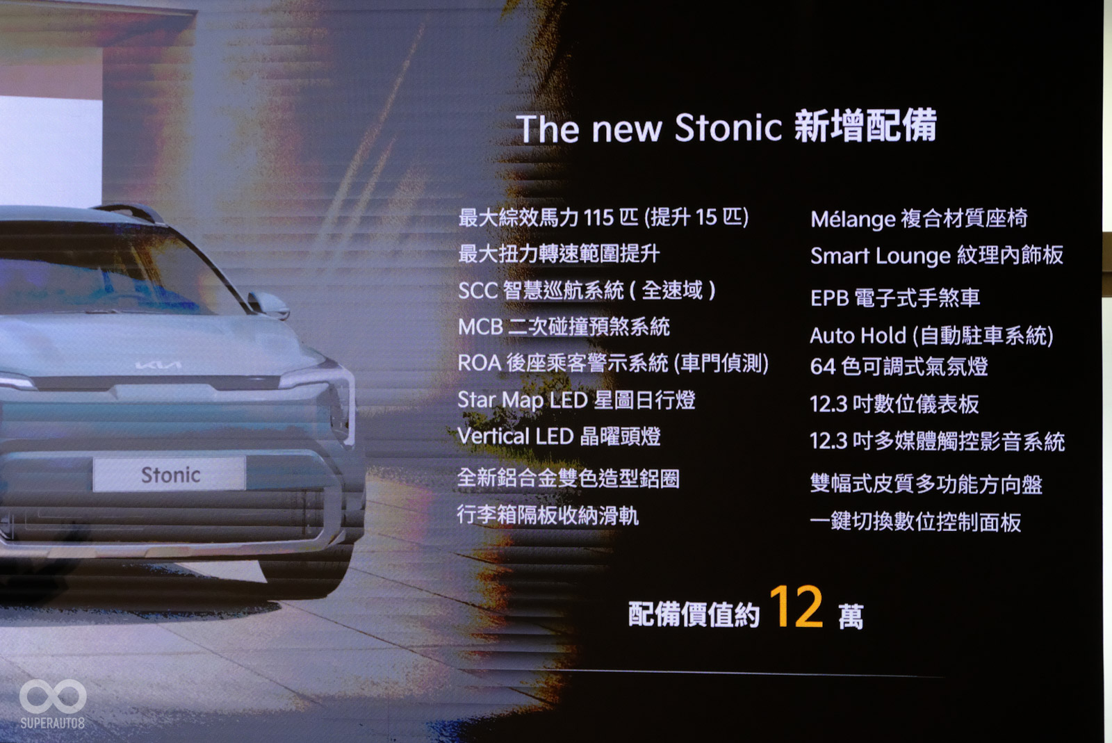 Kia智慧油電科技潮旅The new Stonic以三大產品DNA「輕Chill更有型」、「靈Chill更貼心」、「Chill意更省力」,全面升級總價值逾12萬之多項配備,以79.9萬元起(含汰舊換新與貨物稅減徵)全新上市,即刻入主並享五年不限里程全車原廠保固、48V電池享五年不限里程原廠保固以及六年六大系統延長保固(註4)。