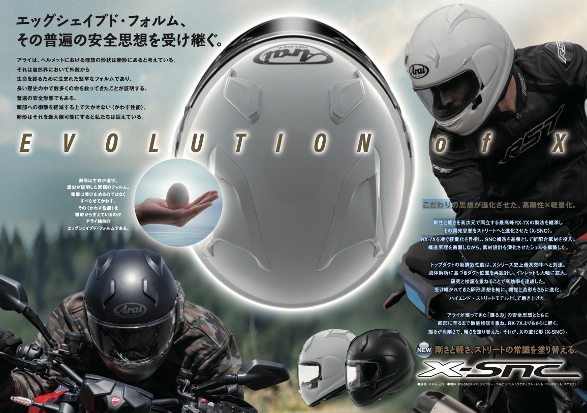 身為日本另一個安全帽領導品牌,近幾年 Arai 在頂級帽款上的更新可是稍微安靜了些,終於在 2026 年3月 Arai 正式發表了全新世代的旗艦街道帽「X-SNC」,這款新帽不僅完美繼承了頂級賽車帽 RX-7X 的高規格 DNA,更在輕量化與通風性能上帶來了突破性的進化 。