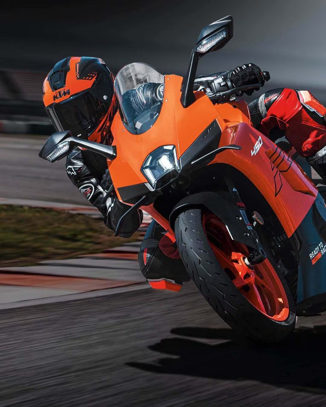 硬體配備更是這台車的重頭戲,不同於春風版本,KTM 毫無懸念地用上了自家的 WP Apex 43mm 倒立式前叉,具備壓縮與回彈可調功能,後方也是全可調的單槍避震;更特別的是制動系統,這次 450 RC 率先採用了 WP 品牌研發的輻射四活塞卡鉗,搭配 320mm 單碟,這在市售車上是相當稀有的配置,加上僅有 168 公斤的裝備重量,靈活度與操控極限勢必會讓現行的單缸 RC 390 感到壓力山大。