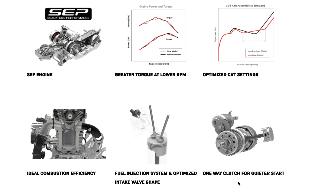 雖然這款車目前在台灣並未正式引進,但看看這份來自印度的官方規格,對於重視實用性的台灣騎士來說確實很有殺傷力,2026 年式的 Burgman Street 在動力心臟上雖然維持 124cc 單缸空冷引擎,但 Suzuki 工程師對輸出曲線做了細膩的調整,最大馬力來到 8.42 PS / 6,500 rpm,扭力則提升至 10.2 Nm,且在 5,250 rpm 就能全數爆發,這意味著在停紅綠燈後的起步會更輕快,少了那種拖泥帶水的沉重感,非常適合都會區頻繁走停的環境。