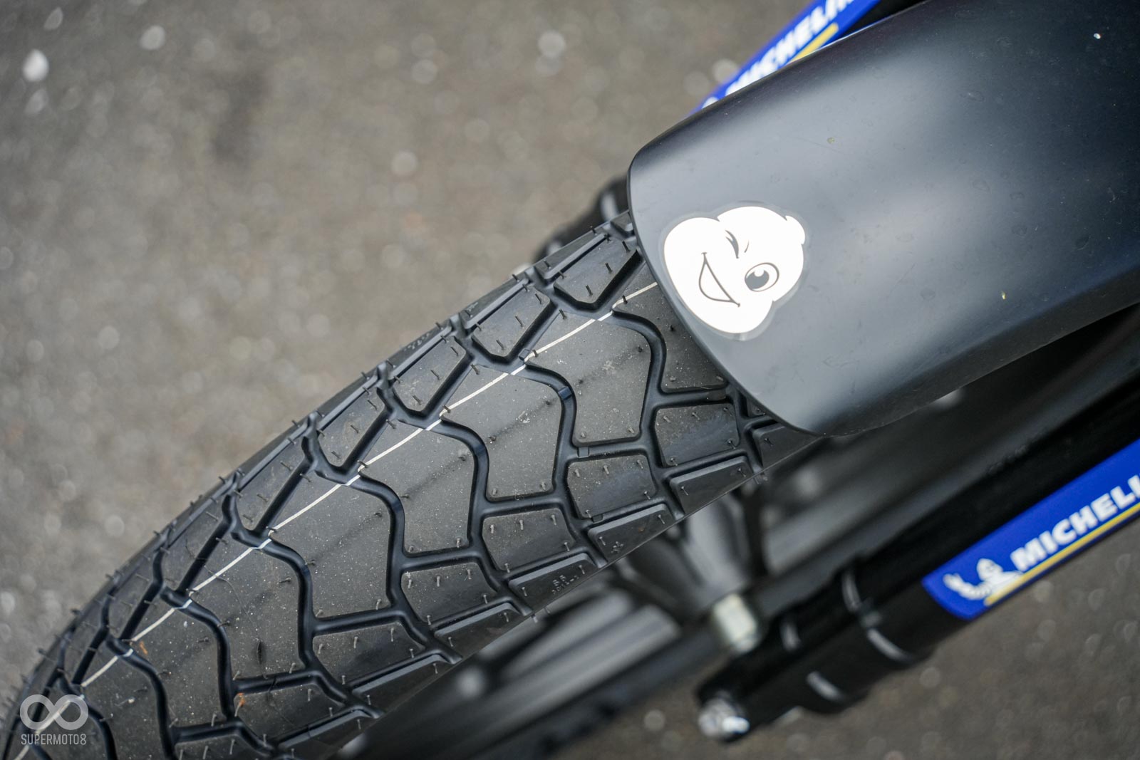 濕地抓地力顯著提升:導入新世代二氧化矽膠料配方,讓雨天騎行更加安心 。