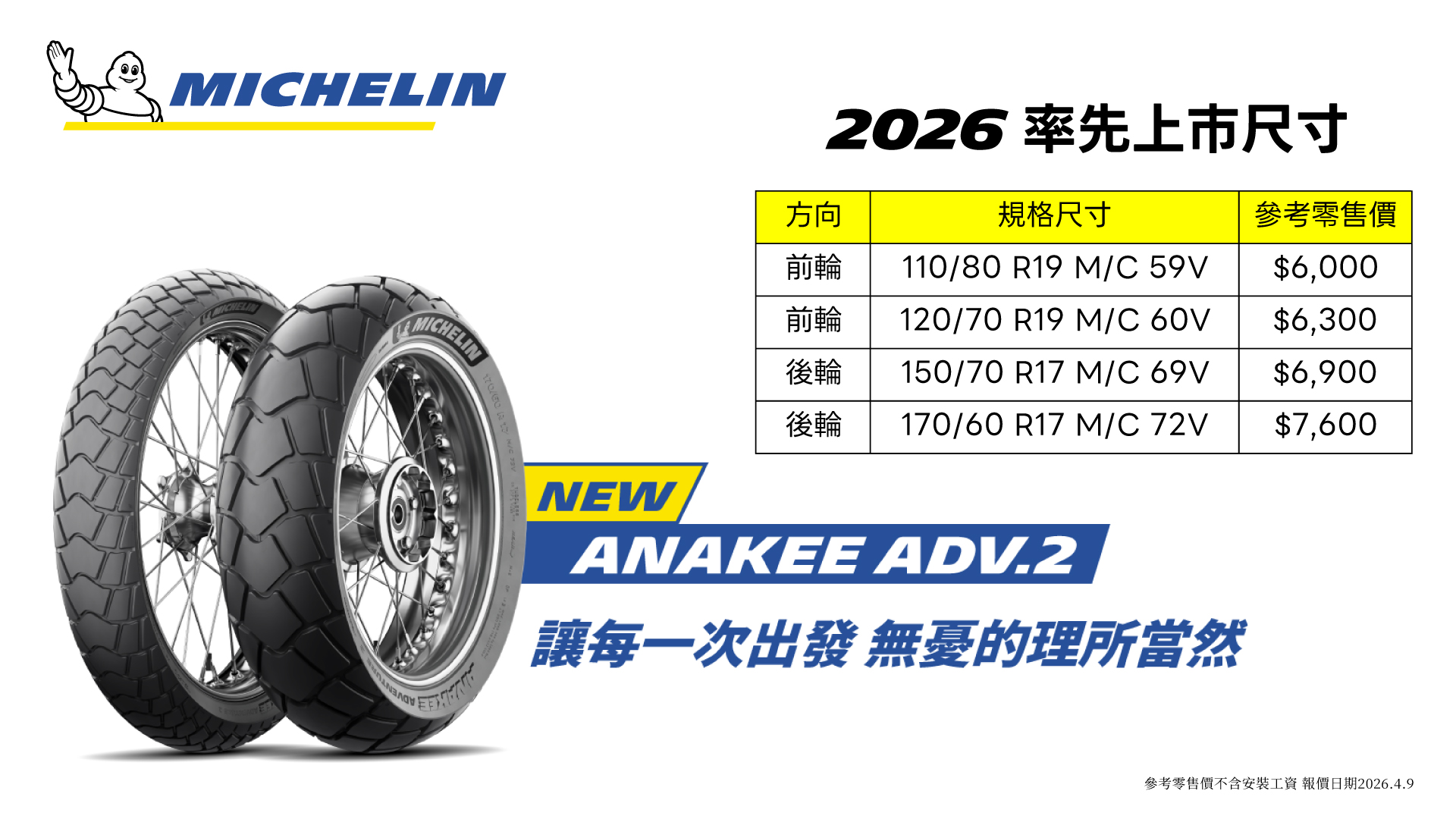 對於熱愛大型多功能車(ADV)的車友來說,北宜公路不僅是跑山的聖地,更是測試輪胎性能的絕佳考場。2026 年 4 月 9 日,米其林二輪台灣總代理忠林實業特別選在北宜公路著名的 GUGU 咖啡舉辦媒體試乘發表會 ,正式引進全新一代旗艦多功能摩托車輪胎 Anakee Adventure 2 。這款新作定位於 80% 公路與 20% 非鋪裝路面使用 ,專為那些平時在城市通勤、假日則想深入林道追尋冒險的騎士所設計 。