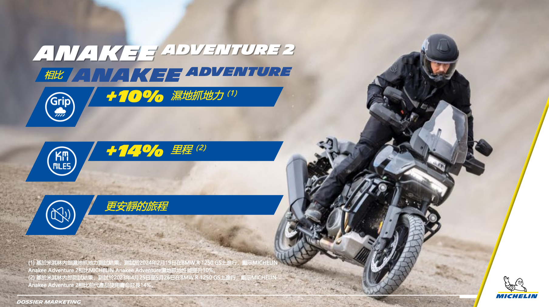 總結來說,米其林 Anakee Adventure 2 成功將日常通勤與冒險基因融合,成為 2026 年多功能車主換胎清單上的強實力候選,米其林總代理也針對 Anakee Adventure 2 推出首波上市尺寸對應車款進行清單整理,不論是 BMW R 1250/1300 GS、DUCATI Multistrada、TRIUMPH Tiger 還是 KTM 1290 系列或 SUZUKI V-Strom 車系都有可供應的尺寸,另外忠林也表示會在 2027 年度進一步補齊 Honda Africa Twin 等其他車款可用的尺寸選擇。