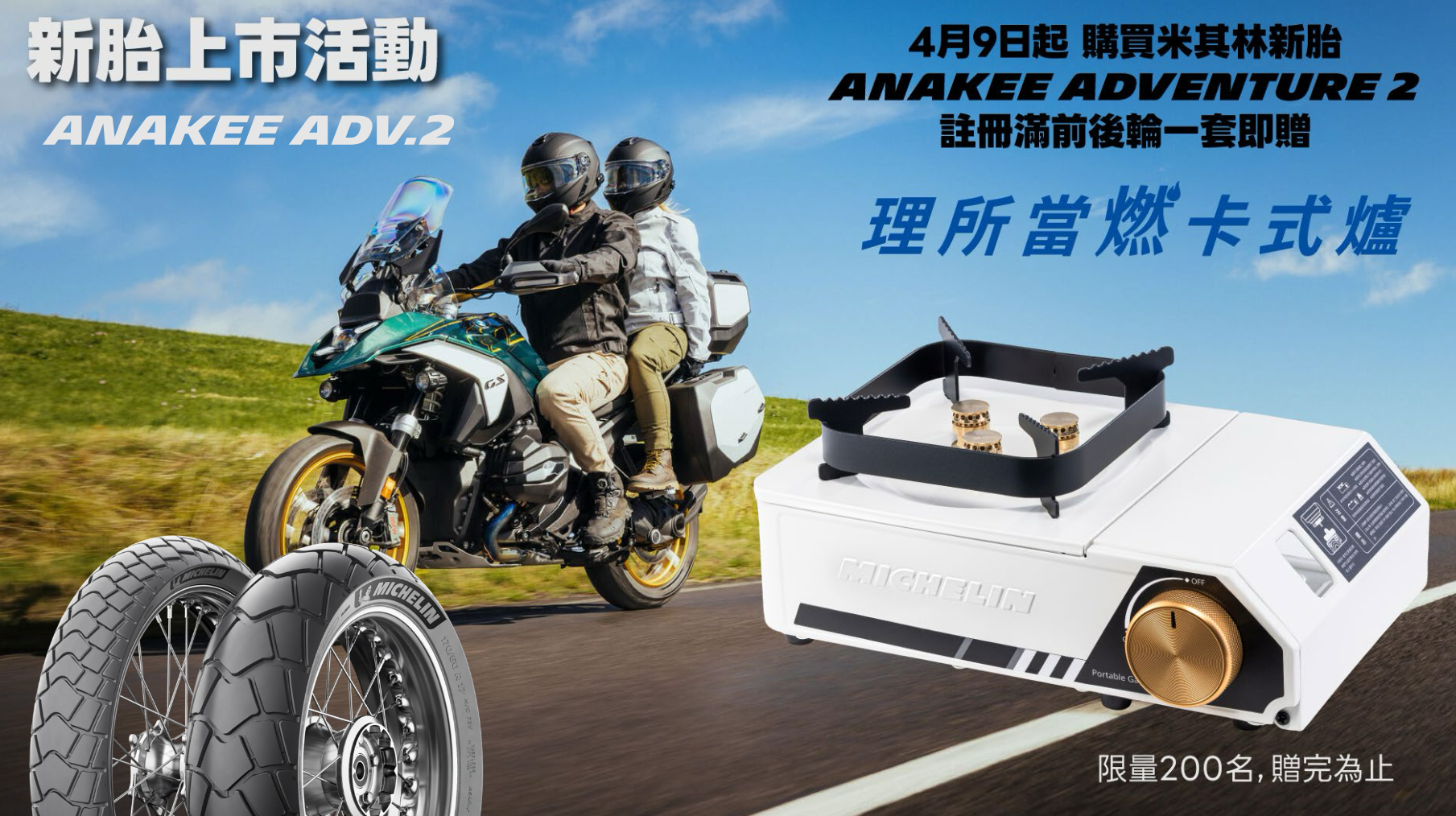 另外,目前購胎也專屬的新胎上市活動贈品,對於喜愛冒險騎車旅行的騎士來說非常便利的「理所當燃」卡式爐,整體的質感相當不錯,近期有想換胎的車友,全新的米其林 Anakee Adventure 2 無論是胎噪、壽命還是顏值、操駕感受方面的提升,絕對都是非常值得參考的換胎新選擇!