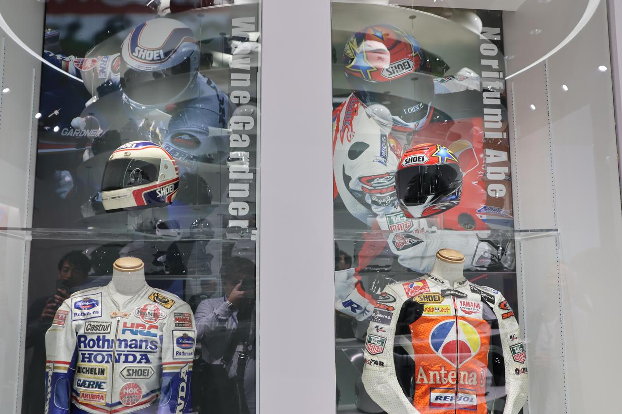 再往深處走則是傳奇車手區,Eddie Lawson、Wayne Rainey,以及我們永遠懷念的阿部典史與加藤大治郎,最讓人驚喜的是,不僅有二輪英雄,連 F1 傳奇車神 Ayrton Senna 與 Jean Alesi 的專屬帽款也赫然在列,這對同時熱愛四輪賽車的車迷來說,絕對是值得駐足流連的珍貴畫面。