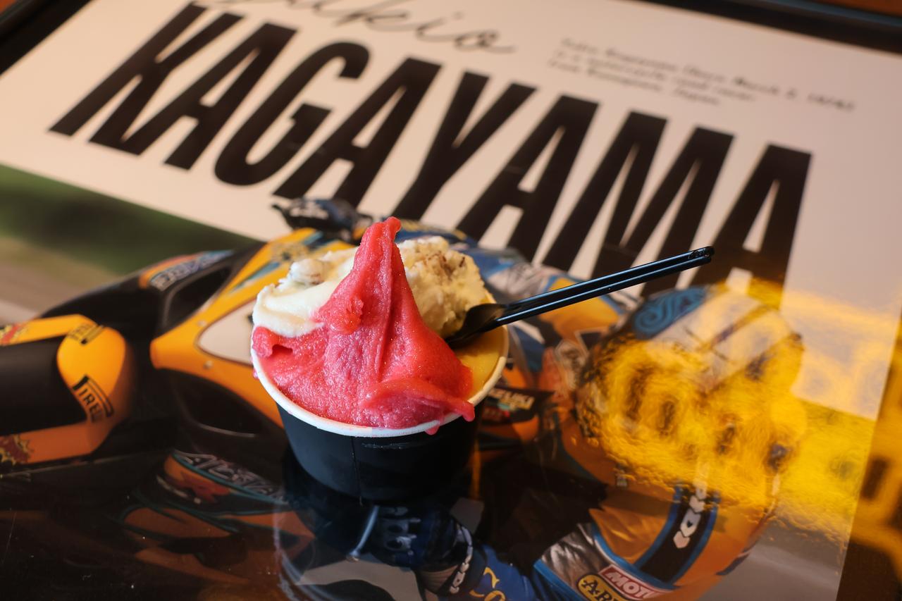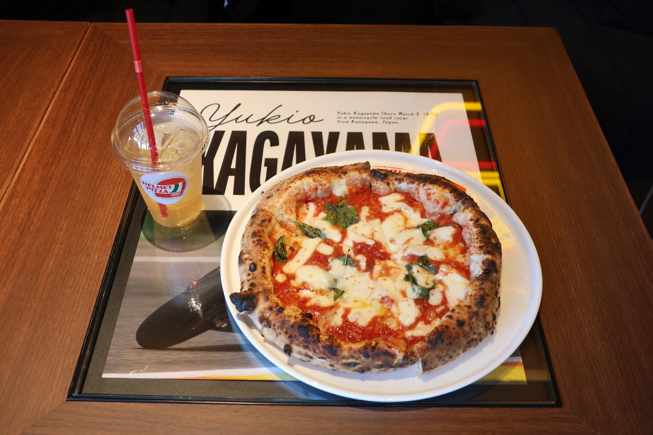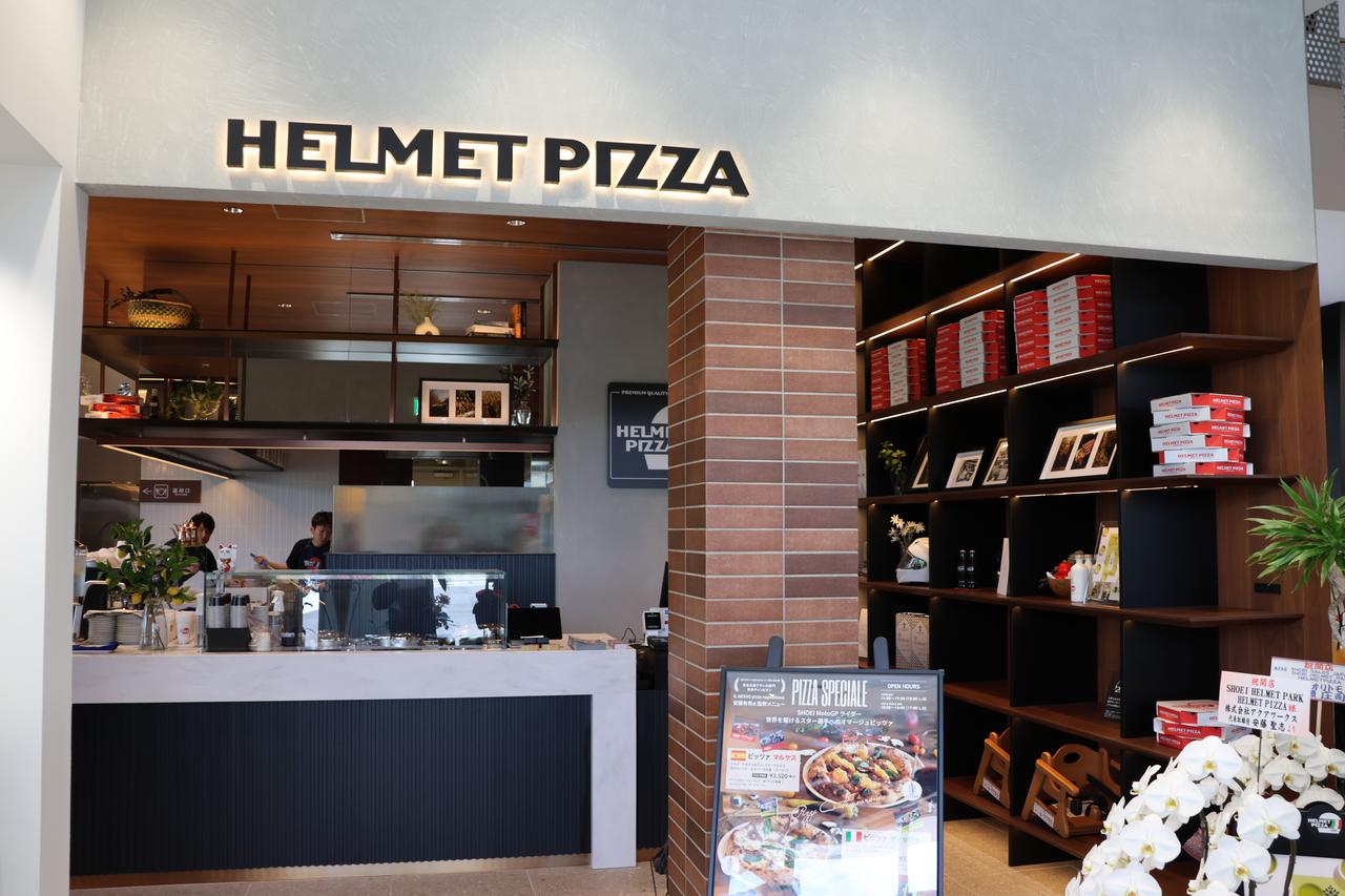 既然稱作休閒園區,填飽肚子自然也是重點,一樓大門旁開設了名為 HELMET PIZZA 的餐廳,特別請來日本知名拿坡里披薩店的主廚監修,點一份熱騰騰的瑪格麗特披薩配上飲料是2180日圓,再來個三球義式冰淇淋只要770日圓,甚至還能點到以 SHOEI 簽約車手為靈感的特製菜單。