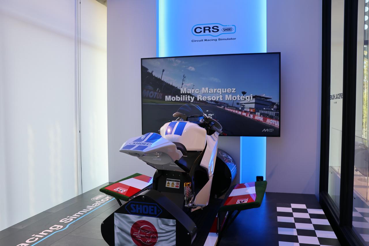 除了看靜態展示,體驗互動更是這裡的重頭戲,展區內除了能一窺 SHOEI 品牌發展史,看到1963年最古老的自行車帽,以及日本警用白バイ和航空自衛隊的特殊帽款外,還引進了西班牙製的 CRS 賽道騎乘模擬器。