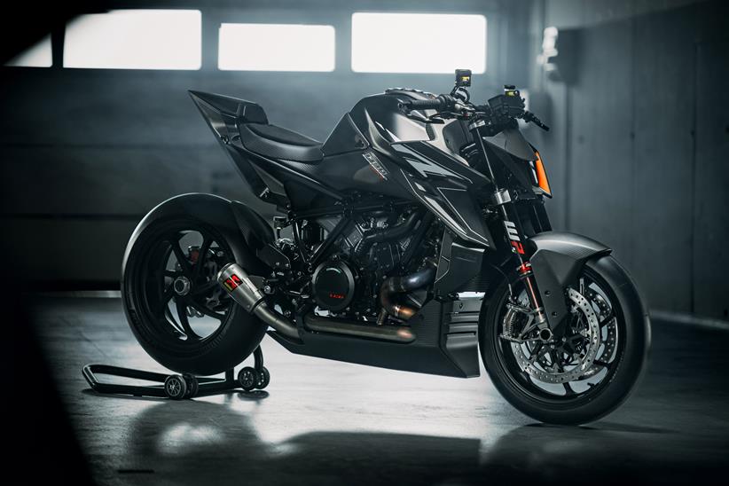 底盤方面,前懸吊為 WP Pro 倒立式前叉,行程 130mm;後懸吊行程 120mm。17 吋輪圈標配 Michelin Power Performance Slick 光頭胎。制動系統為 Brembo GP4-MS 一體式四活塞卡鉗搭配 320mm T-Drive 碟盤,讓你在直線底展現最晚煞車的霸氣!