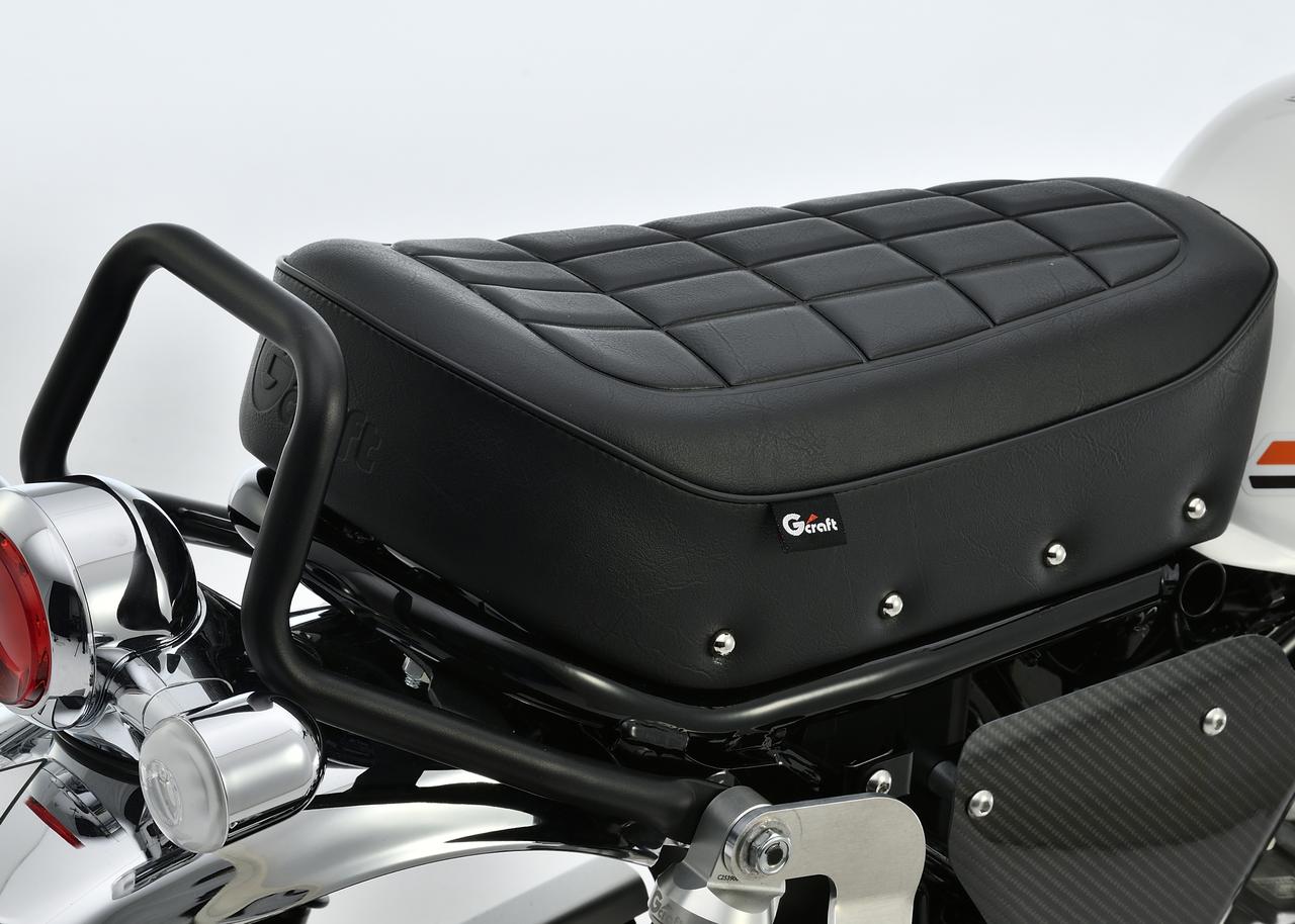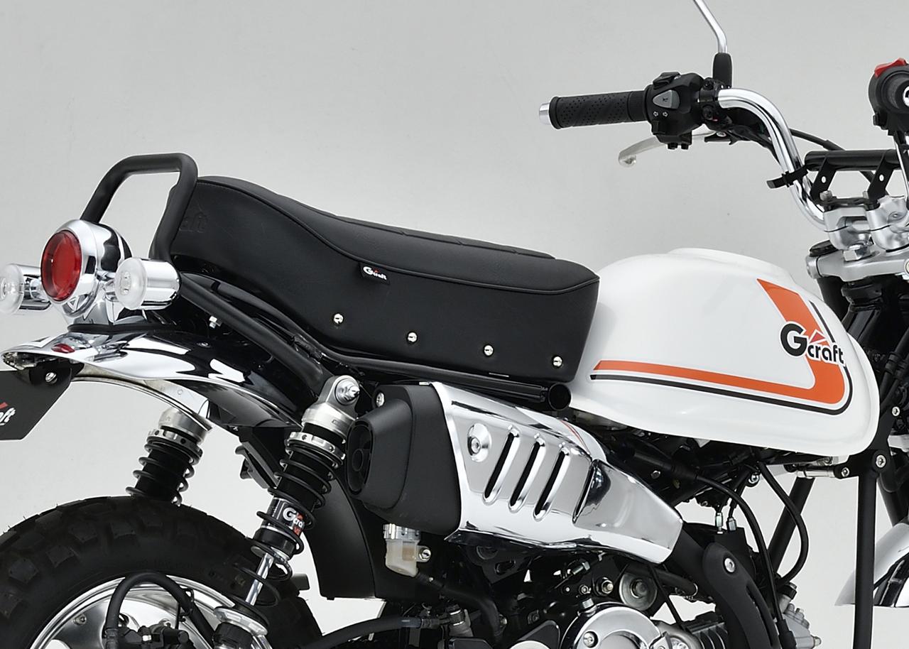 對於台灣騎士來說,125c.c. 白牌車款最大的優勢除了免去大型重機頻繁驗車的煩惱外,外觀件的改裝空間也相對自由,這款 NR 坐墊的靈感源自於 1974 年登場的 Monkey Z50J,那個時期的 Monkey 以其厚實的座墊和精緻的車身比例著稱,也是許多台灣老玩家口中的「真猴子」,G-Craft 巧妙地在坐墊側面加入了金屬鉚釘裝飾,這不僅是單純的裝飾,更是將那種屬於 70 年代的硬派與優雅完整移植到現代車架上。