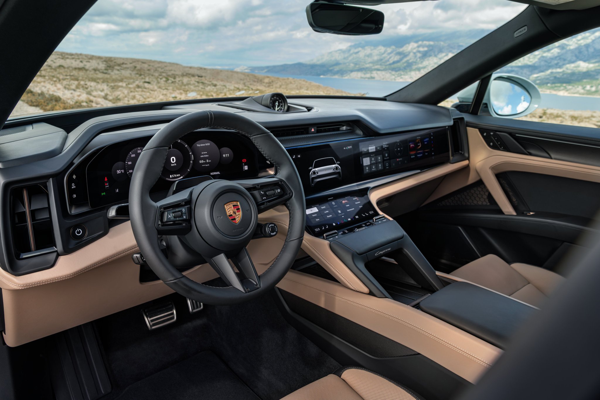 Cayenne Coupé Electric 承襲 SUV 車型的「保時捷駕駛體驗(Porsche Driver Experience)」設計,提供數位化且以駕駛為中心的操作概念。其特色在於寬闊的顯示區域,包含純數位儀錶板、中央整合式懸浮螢幕(Flow Display),以及列為選配的副駕乘客螢幕與擴增實境(AR)抬頭顯示器。