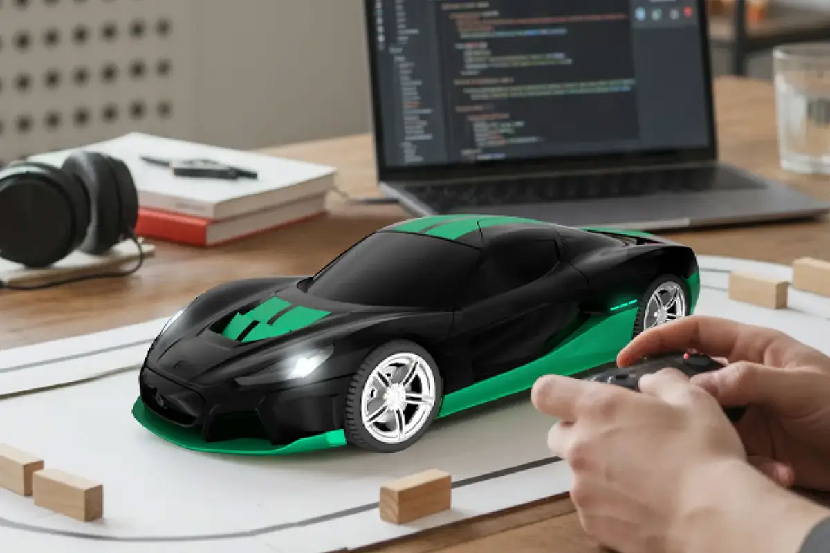 這套 RC 套件不只是簡單的遙控車,而是一個完整的 STEM 學習平台。玩家需要自行組裝底盤、馬達、輪胎與轉向機構,並透過 CircuitMess 的 CircuitBlocks 或 C++ 編程環境,為車輛撰寫自訂功能,例如駕駛規則或燈光效果。除了能用專屬的 Time Attack 控制器進行競速外,還能連接電腦進行「調校」,體驗工程師般的開發過程。