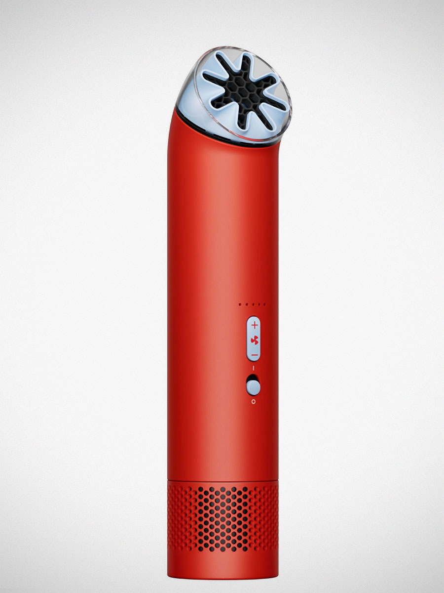 整機重量僅 212 公克,尺寸為直徑 38 公釐、高度 180 公釐,大小接近智慧型手機。內建 5,000mAh 電池,在最低風量下可連續使用 6 小時,充電時間約 3 小時。
