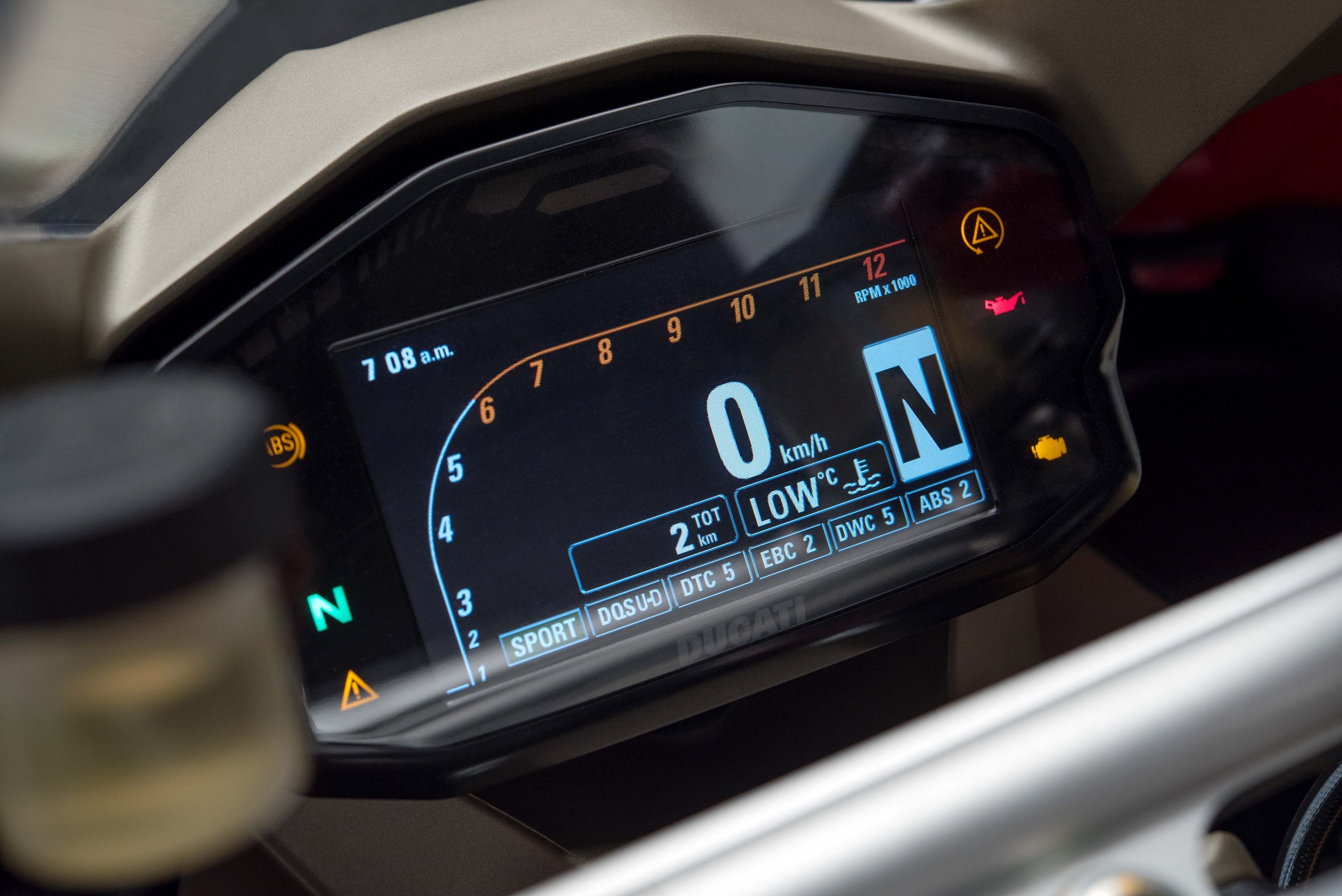 車上還多了引擎剎車的控制選項,可視情況增強或減弱,而只要換上系統內預設的某些款輪胎,自動輪胎配對裝置將會自動套用該款輪胎的各項數據,以利其它電控系統精準運作。這些設定參數有一大部分都來自WSBK 賽事的經驗回饋,使電子系統不再是綁手綁腳的雞肋裝置,反而是更利於賽道駕駛的上乘配備。
