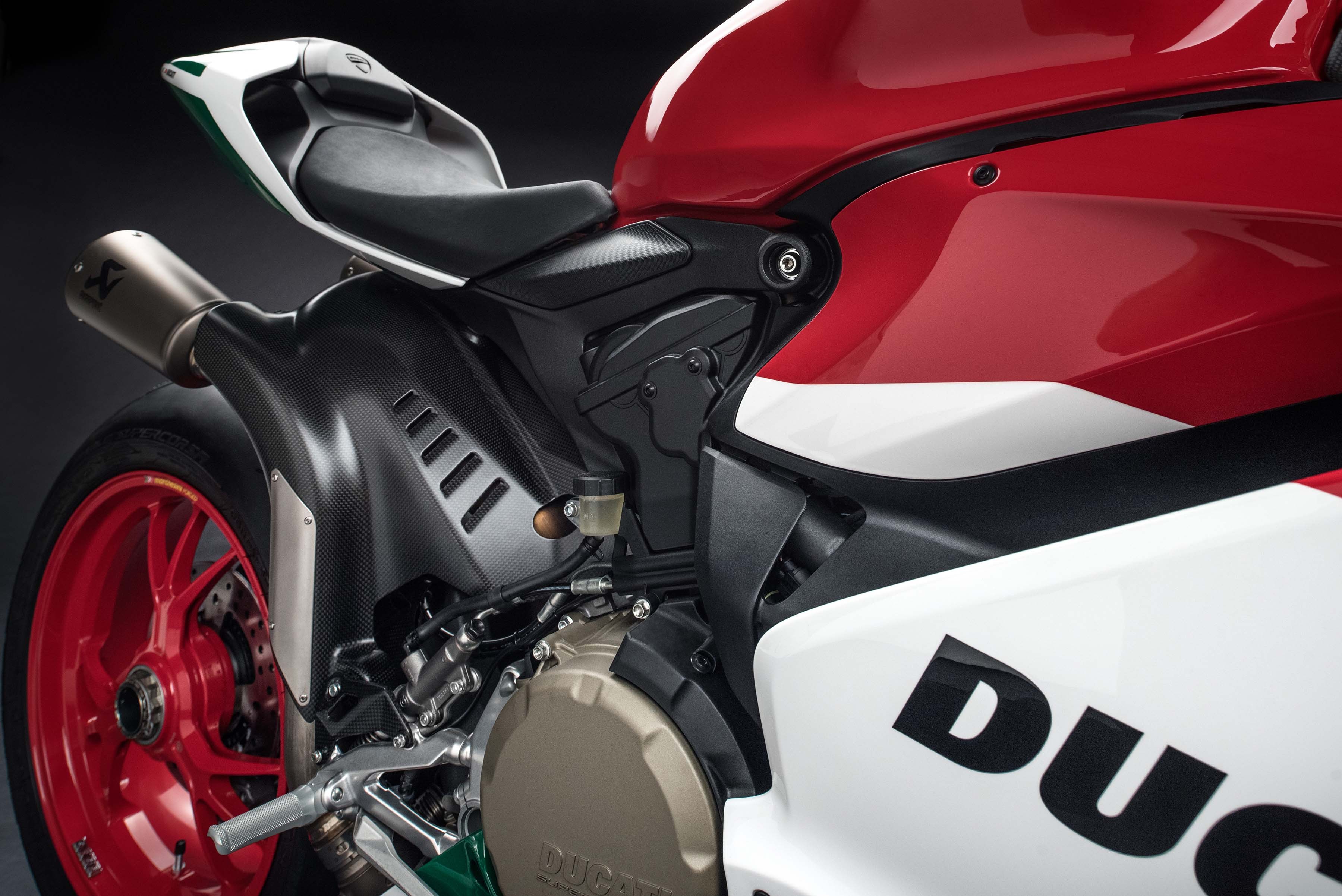 這輛Panigale 車系最終版的引擎源自Superleggera 的1,285 c.c. Superquadro,而非R版的1,198 c.c. 版本。內部共用不少零件:如連桿與進排氣門皆為鈦合金材質,曲軸上有鎢配重片;直徑達116mm 的活塞只有兩條活塞環,減少運轉阻力。