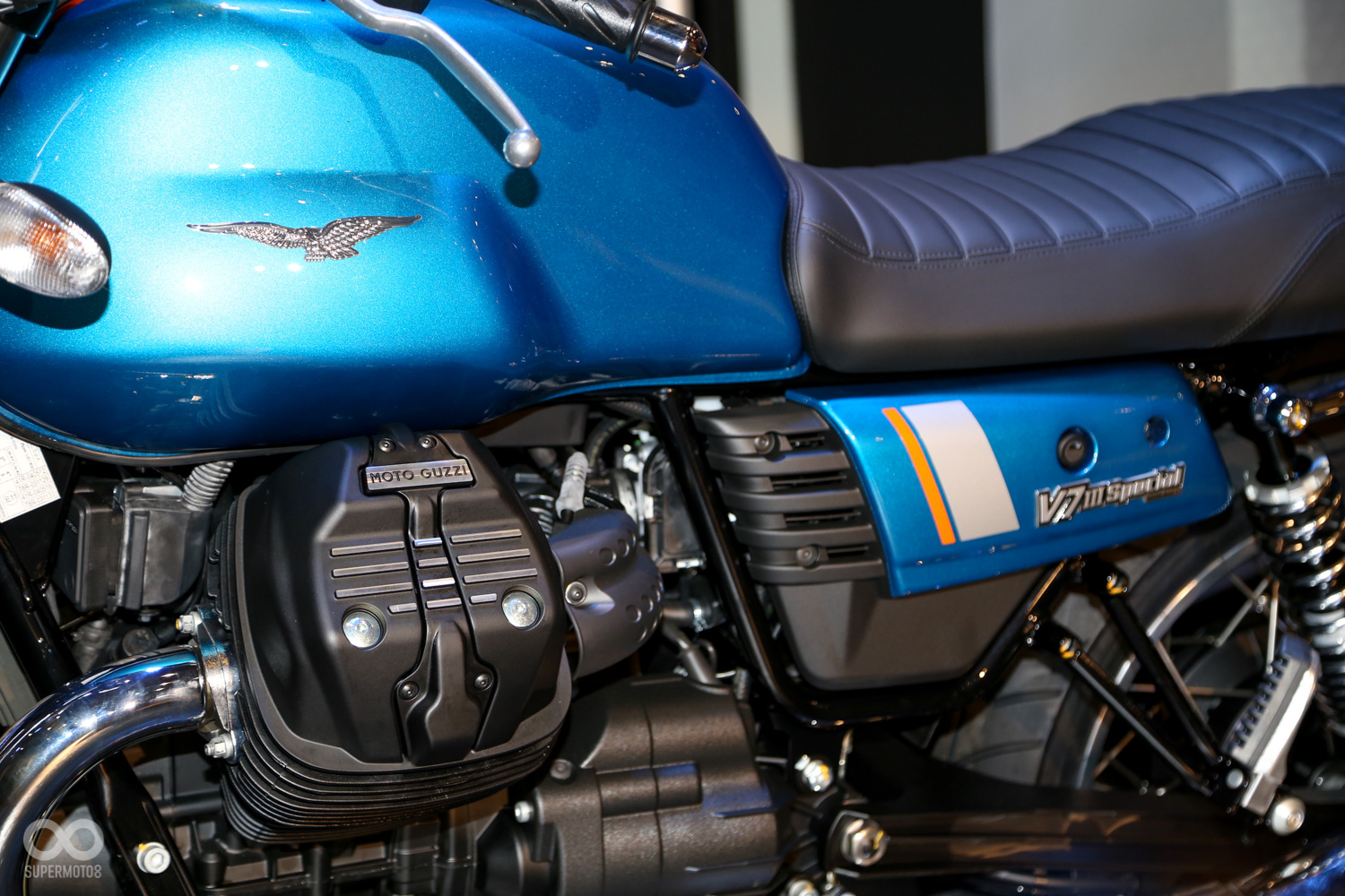 本次發表現場展出的車款以V7III Stone與Special為主,Stone為V7車系入門車款,整體設計風格偏向現代,風格俐落簡約並與Moto Guzzi的經典韻味結合,創造出更為年輕的車款印象,而Special則是完全走經典路線,鍍鉻雙環錶、跑車拉線、毛毛蟲椅墊以及鋼絲匡,正統的復古風味展現出Moto Guzzi歷久不衰的義式風情。