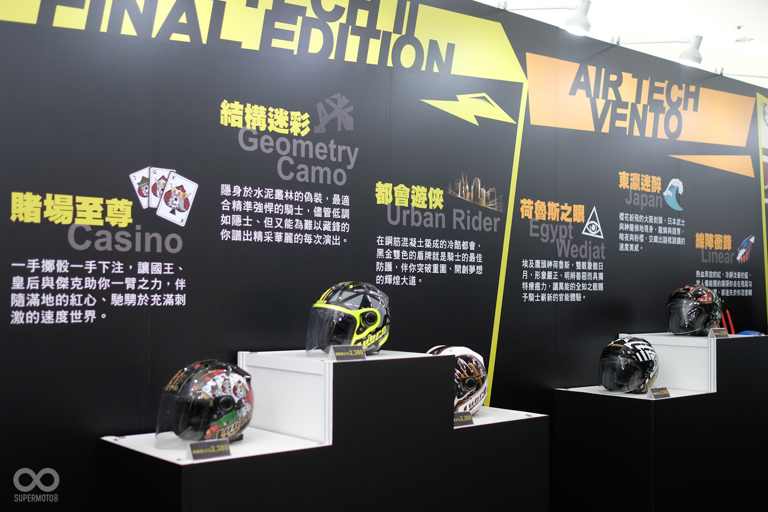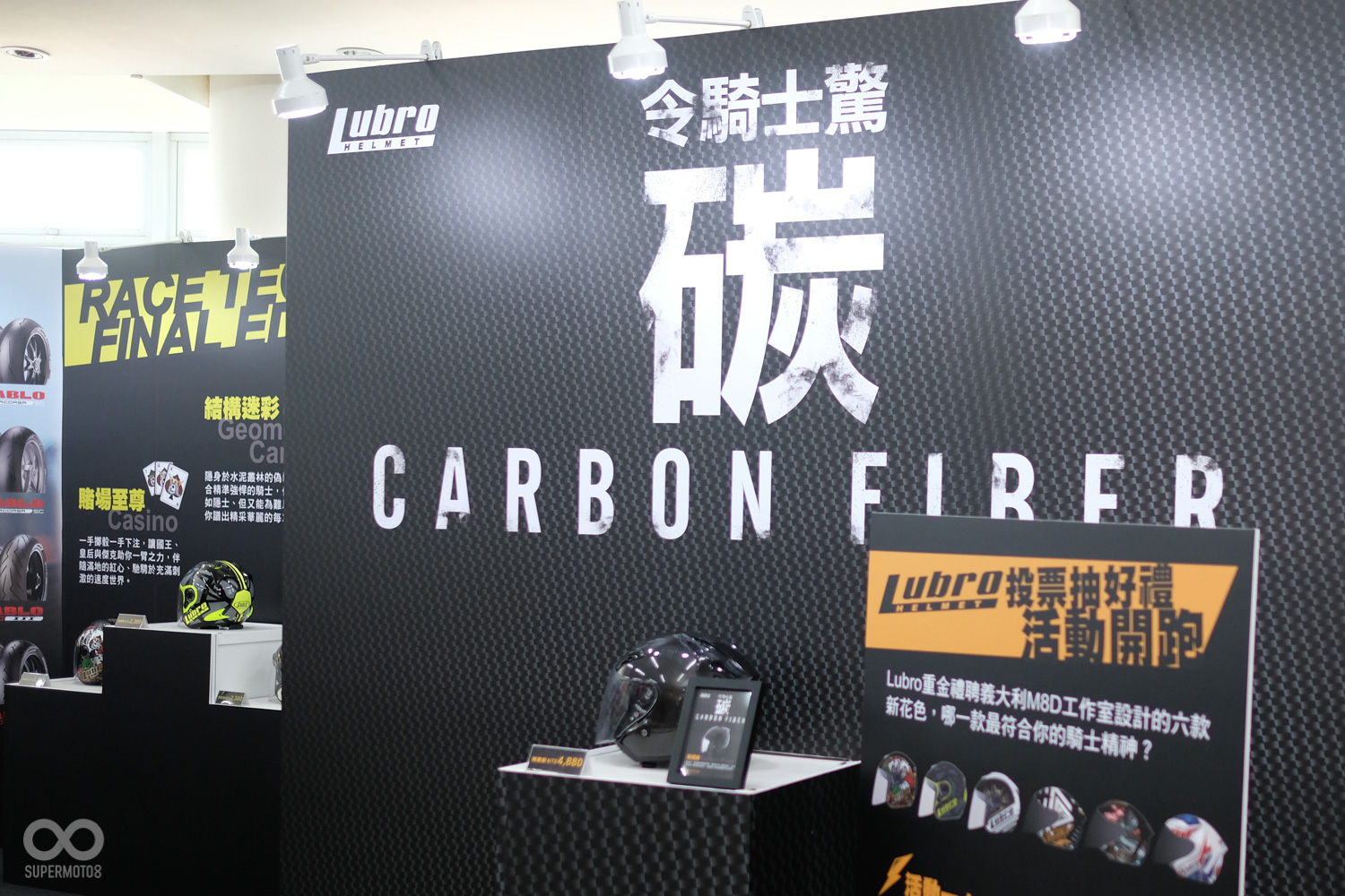 今年,最受到矚目的除了6月才在國內舉辦過亞太區國際發表會的2款PIRELLI最新速克達輪胎之外,最受矚目的就屬國內首見,由義大利專業設計工作室 M8DESIGN操刀設計的6款LUBRO安全帽全新花色,其它如 好運車業 代理的電子胎內式TPMS,更在展場推出專屬優惠,還搭配PIRELLI購胎優惠,要給到場消費者最多的驚喜與收穫。