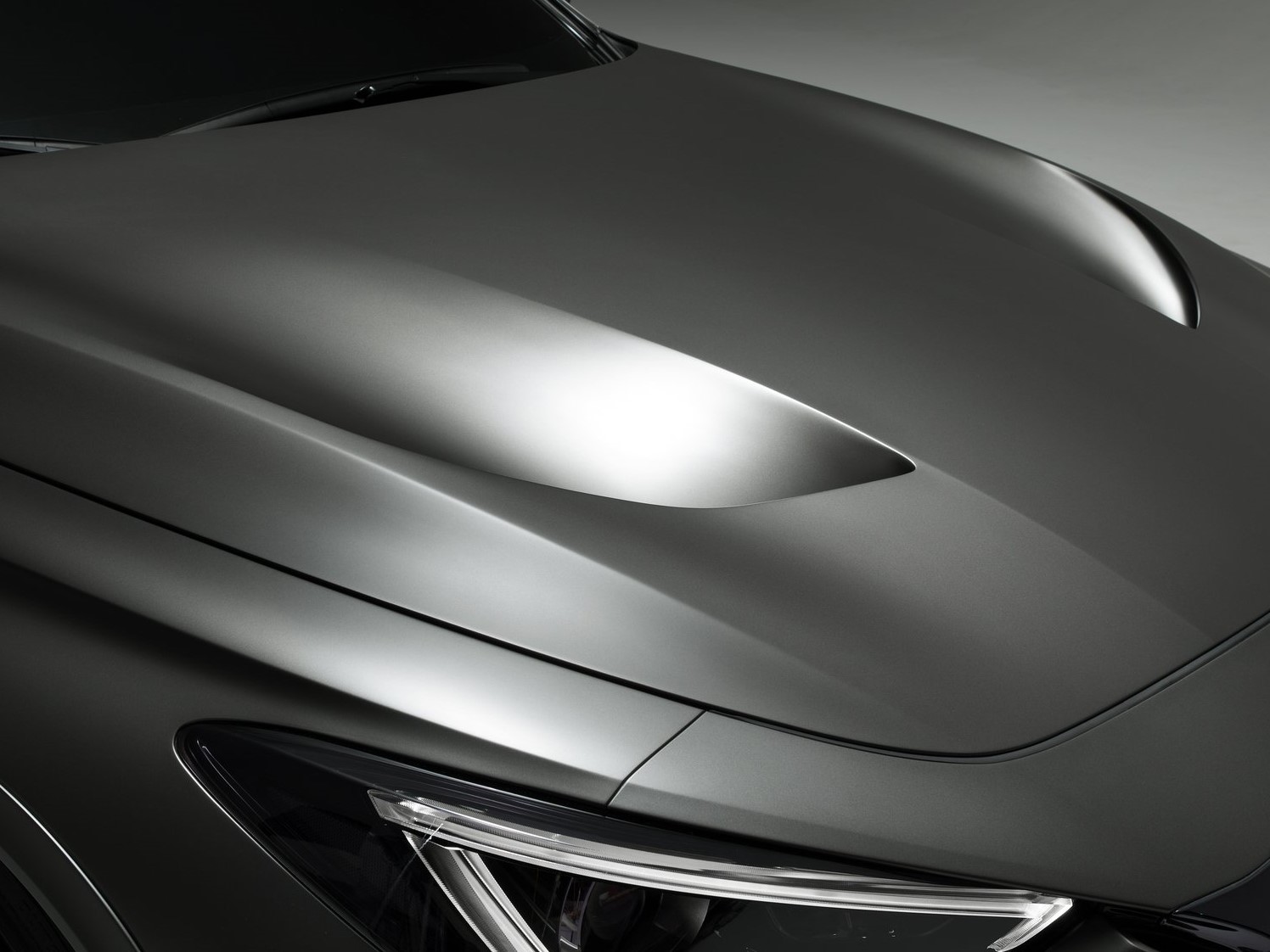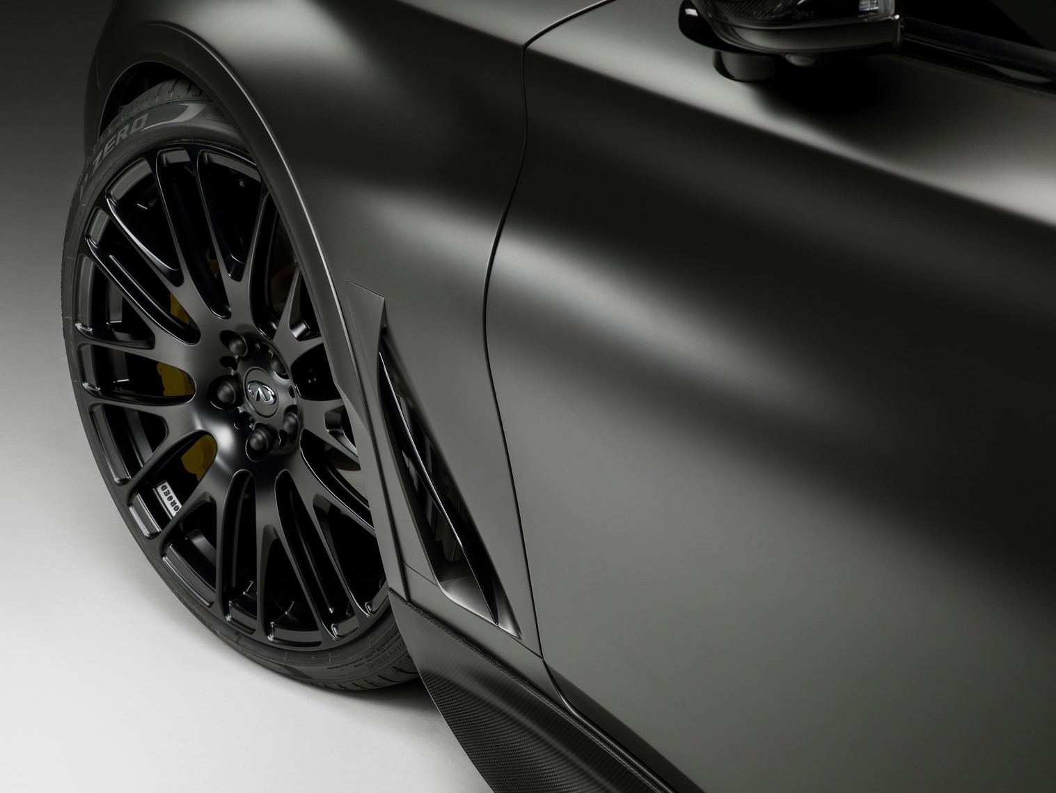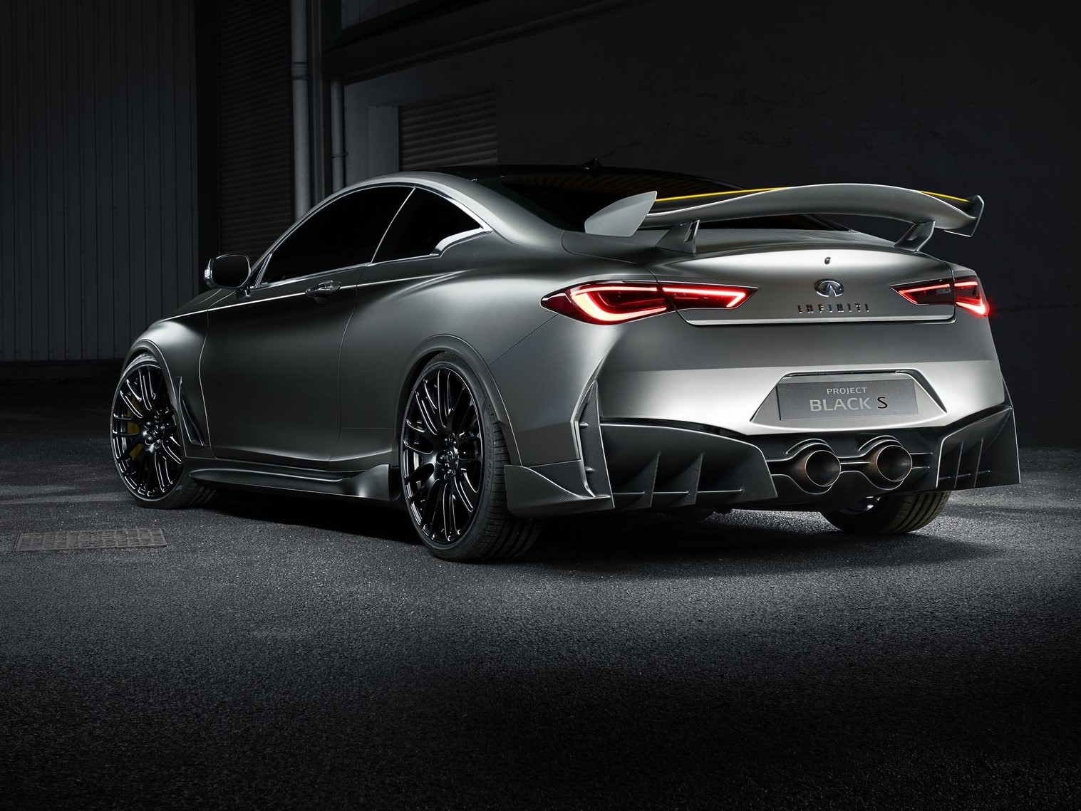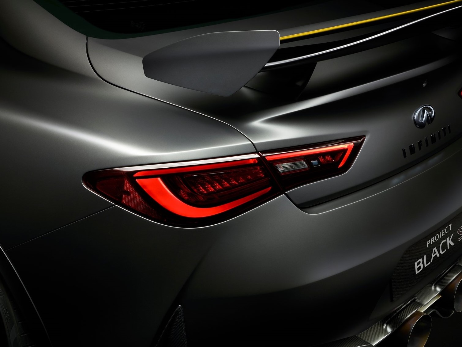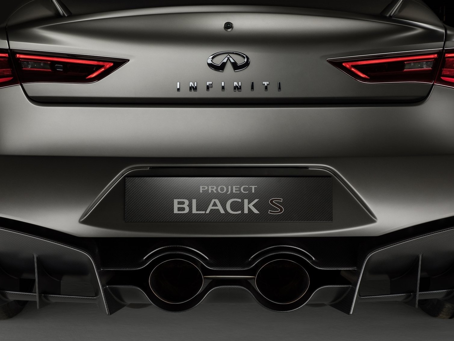 車尾大型固定尾翼也由碳纖維製成,達到高速時的穩定性。車身主要線條來自於Q60,PROJECT Black S保留原運動轎跑車的流線,要應付強悍的動力,設計師進行一系列的改變,創造出大膽的外型,其目的就是希望在高速時氣流能形成最大壓壓力,車身的孔洞更能快速排出引擎熱能。