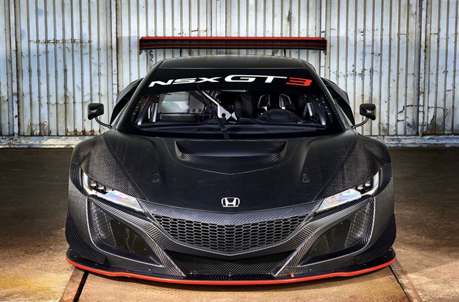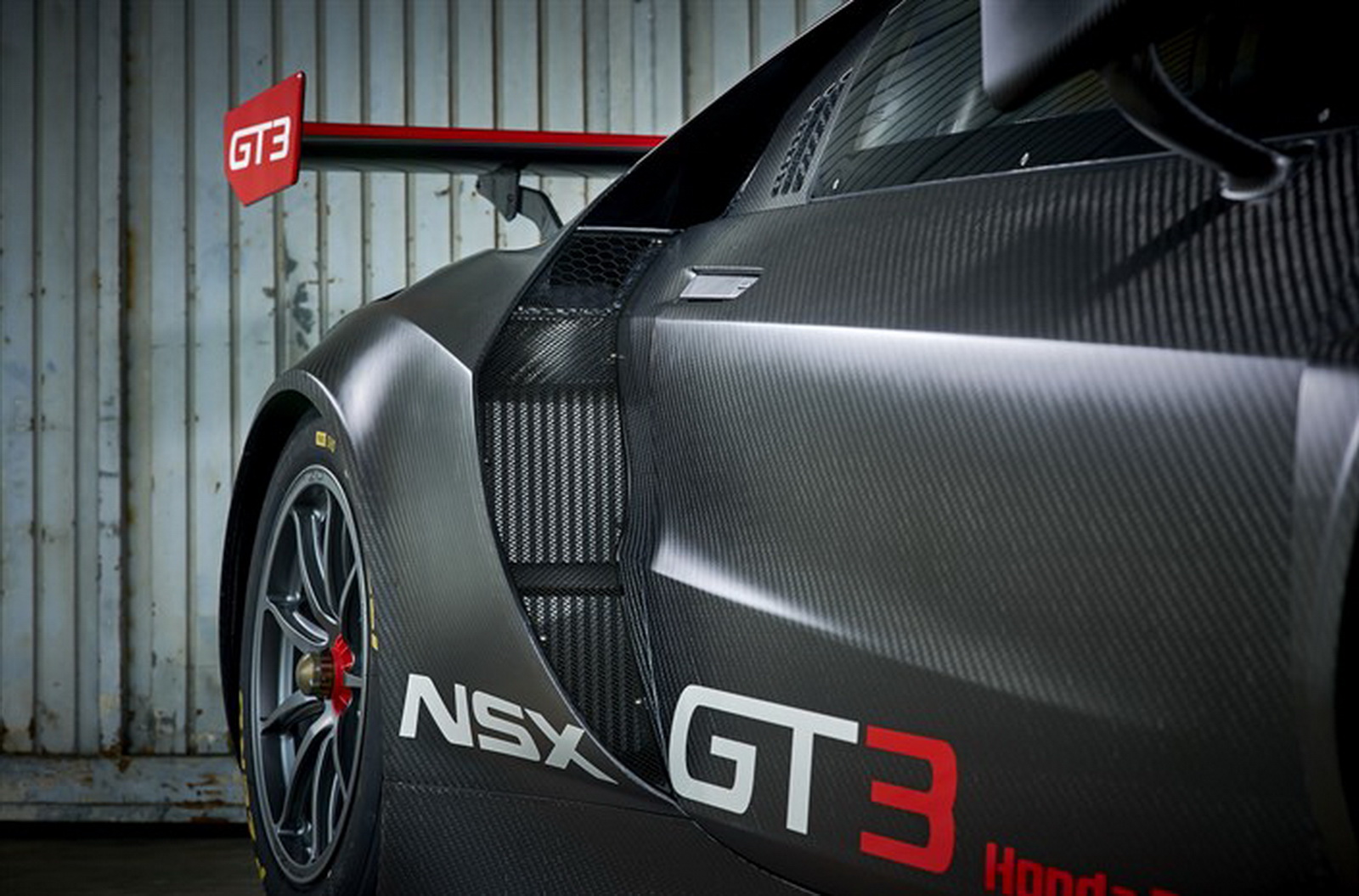 Honda NSX GT3在外型與原廠市售車有些微差異,外部大量留下碳纖維材質塗裝,沒有刻意烤漆蓋過,當然車隊想要新的彩繪也是能後續更改。前保桿、車側、後保桿有著誇張樣貌,這些都是為了空氣力學而設計。最明顯的是後車尾的大型尾翼,高速時能有最大下壓力。輪胎配置比起道路版的小,賽事規定只能搭載19吋規格尺寸。