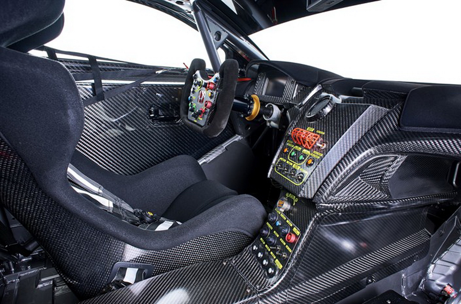 內裝部分,賽車當然沒有什麼豪華配備,只留下一些必要的裝置。另外,還要一些符合規定的安全配備,像是防滾籠、賽車座椅、六點安全帶、斷電開關、滅火器等。不過移除了那麼多東西,車內還是有顧及到質感,所有飾板都用碳纖維包覆,當然這也是為了輕量化。