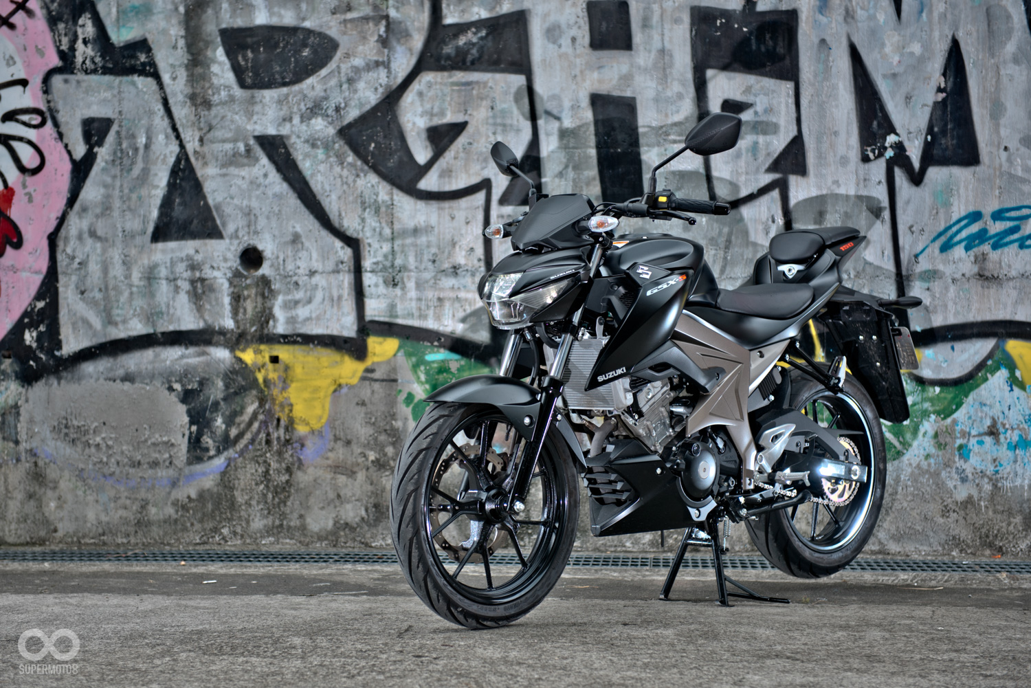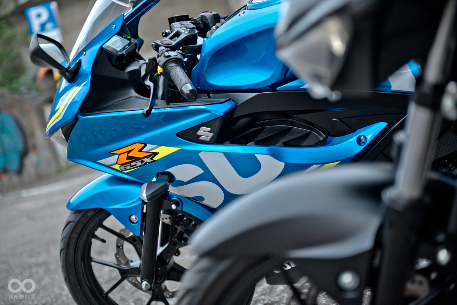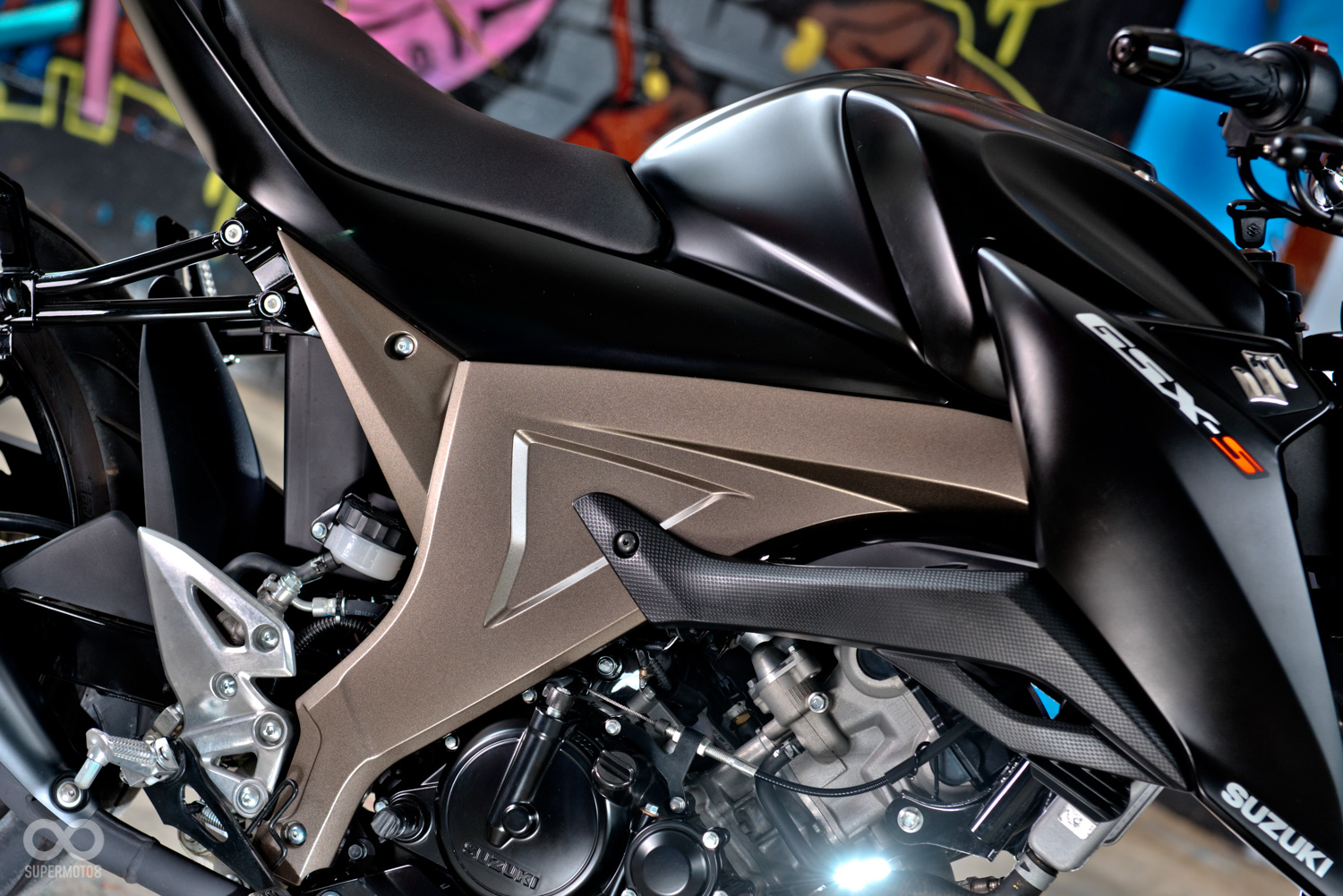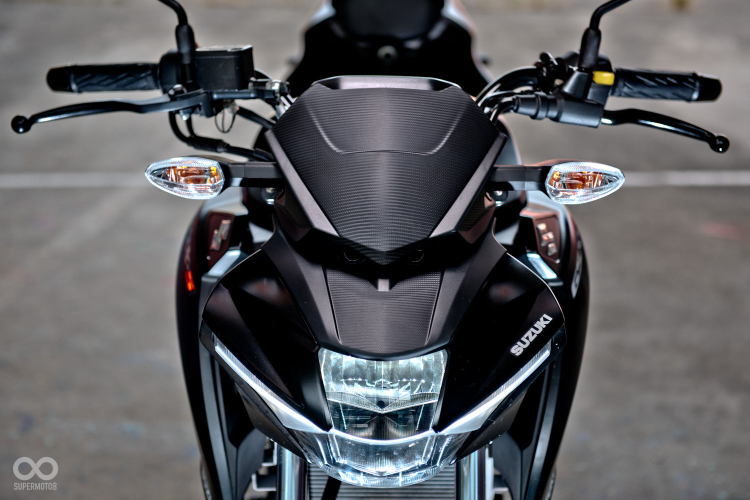 雖然是小車,但在造型方面也不馬虎,車頭呈現寬扁的紡錘造型,LED頭燈搭配兩側挺立的折線,營造出些許的現代感,而油箱與兩側飾蓋則使用了大面積的弧形曲面與銳利的稜線勾勒出肌肉感,兩側飾蓋更是如同箭矢一般,幅有強烈的動感與侵略性,而這樣的設計則與GSX-S750有著異曲同工之妙,最後再補上下導流作收尾,讓這雖然是台小車,身形也不會顯得過份單薄。