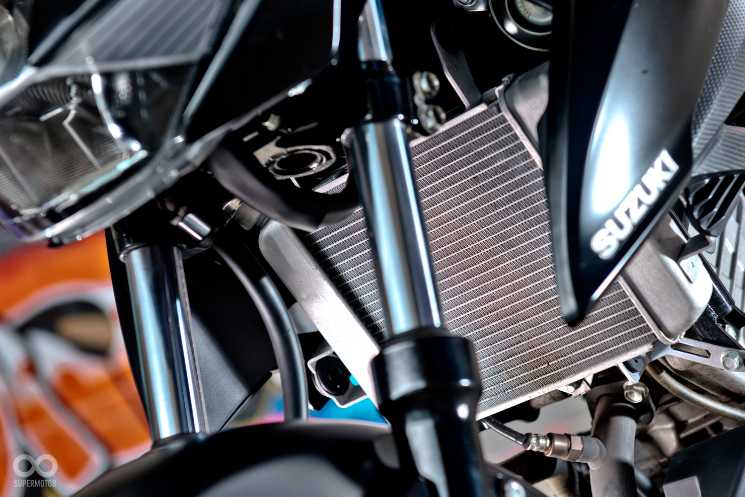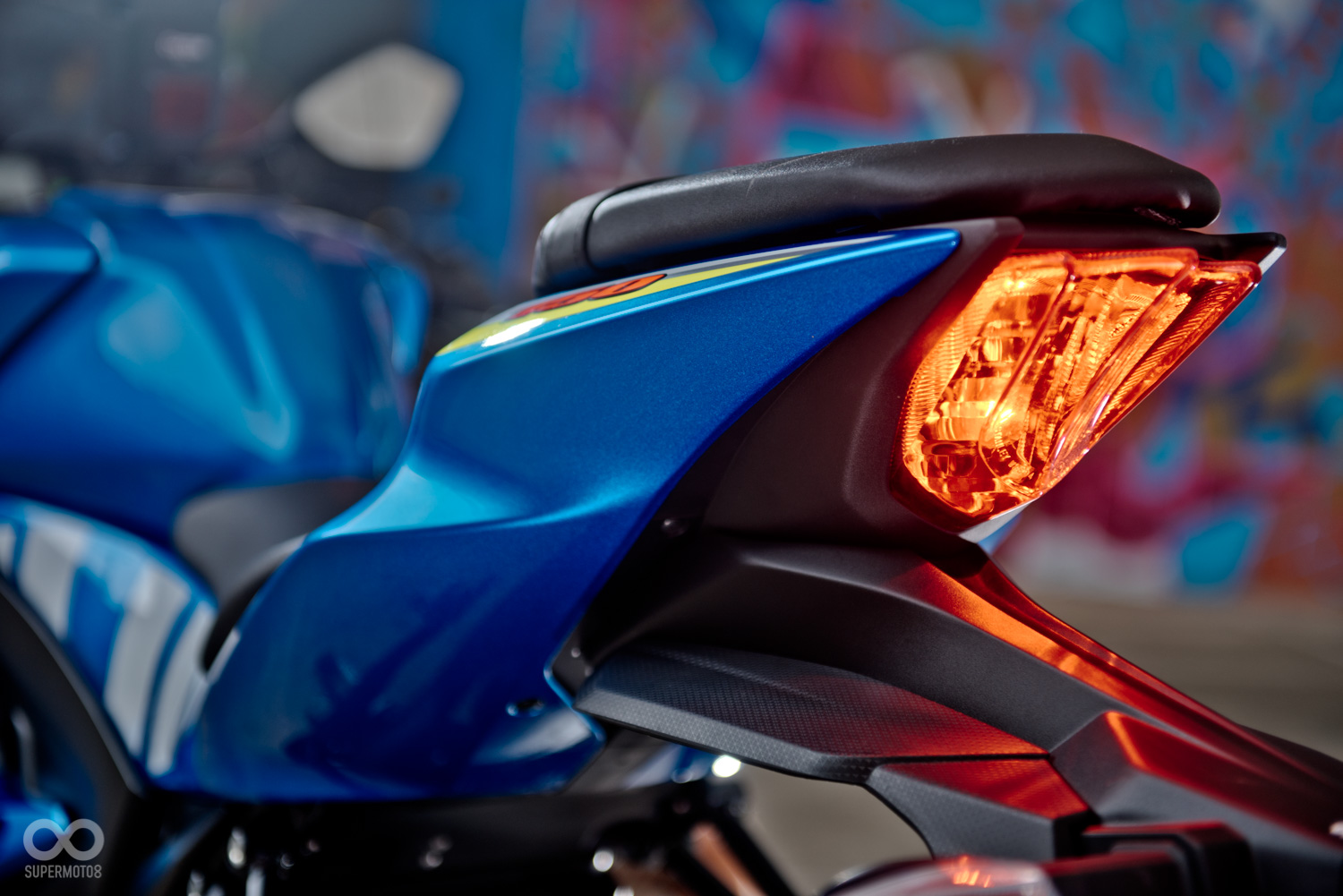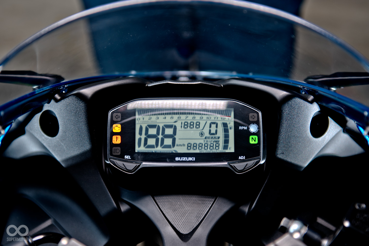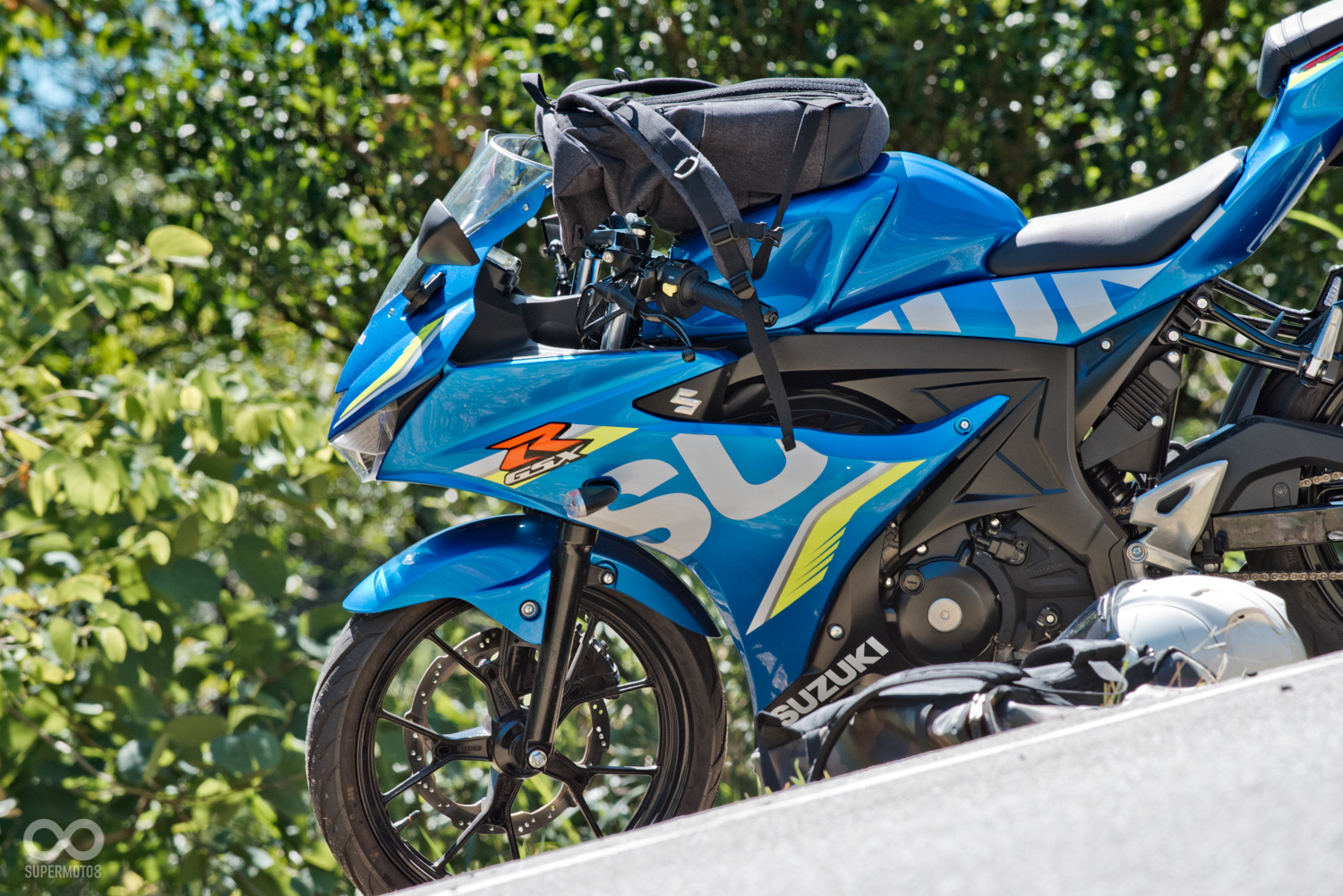 GSX-R150掛上了整流罩,後照鏡也從把手一到了頭罩的位置,寬扁銳利的車頭造型為小阿魯營造出一種蓄勢待發的運動氣息,而側面則是簡潔俐落的單曲面構成,由車頭延伸出的一道折線從上方貫串一路帶到了車尾,簡單的線條卻也讓車側的造型更為明快且精神並且富有強烈的速度感。