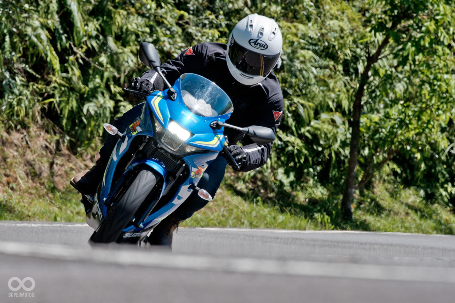但稍作習慣後便會發現,這樣的姿勢其實對於車輛的操控有很大的幫助,車頭的路感清順時晰許多,而這份清晰也讓我對於進彎的步調掌握更有信心,煞車,退檔,看著轉速衝上紅線區,油箱一夾順勢帶入彎中,充分地感受到所謂的人車一體。
