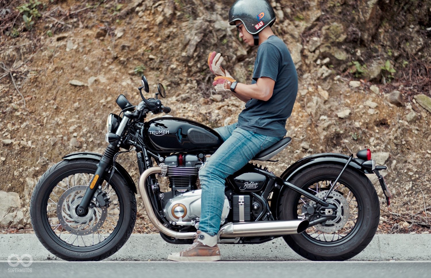 乍看下TRIUMPH BOBBER 低矮的座椅、俐落的車尾,小巧的油箱,承襲了手工車般的放蕩靈魂,但當你仔細端倪,細膩的引擎裝飾、精緻的部件、特有的牛角手把,這確實展現了TRIUMPH的英式風味。也因為如此,這輛BOBBER在風格與精緻獲得了相當均衡的表現,也讓筆者不論何時何地只要停在路邊就忍不住欣賞起這特有的風味。相處的這幾天,就像帶一位模特女友出門一般,必須精心打扮才襯得上它的美,絲毫不願被一點穿著上的妥協破壞這帥哥風味。