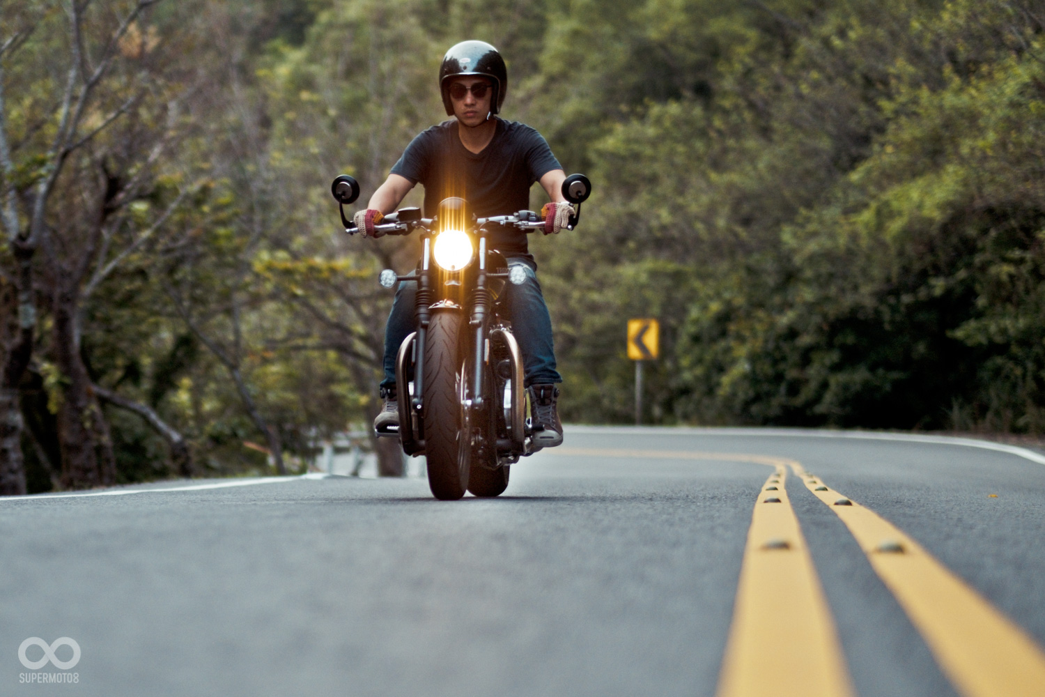 身為一輛型男帥車,要提到跑山似乎有些俗氣,但BOBBER的山路表現不得不讓人稱讚,從新店轉入北宜山道,這具低轉扭力充沛的1200cc引擎,原本在平路加速上已經相當強悍,但來到山道,上坡出彎更是推著騎士向前衝刺,此時坐墊下這為了帥氣而設置的中置短行程多連桿懸吊,意外的創造了清晰穩定的路感,配上前19吋大輪框與長軸,整體的指向相當清晰。但當進入彎道悠遊的節奏後,腳踏硬狠狠的磨地,似乎提醒著我別忘了它騎帥不騎快的帥哥性格。