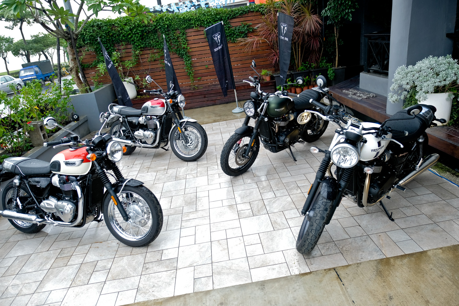 今日10/20在八里 TonUp Cafe 由 TRIUMPH 台灣總代理安東貿易所舉辦的2017 TRIUMPH 新車媒體搶先試乘會,現在除了展示旗下多款復古車款外,最令人期待的重點還是性能街車在Street Triple R與復古咖啡Street Cup的正式亮相。同時總代理更安排了短程的試乘體驗讓大家對兩輛車款有一些初步的了解。