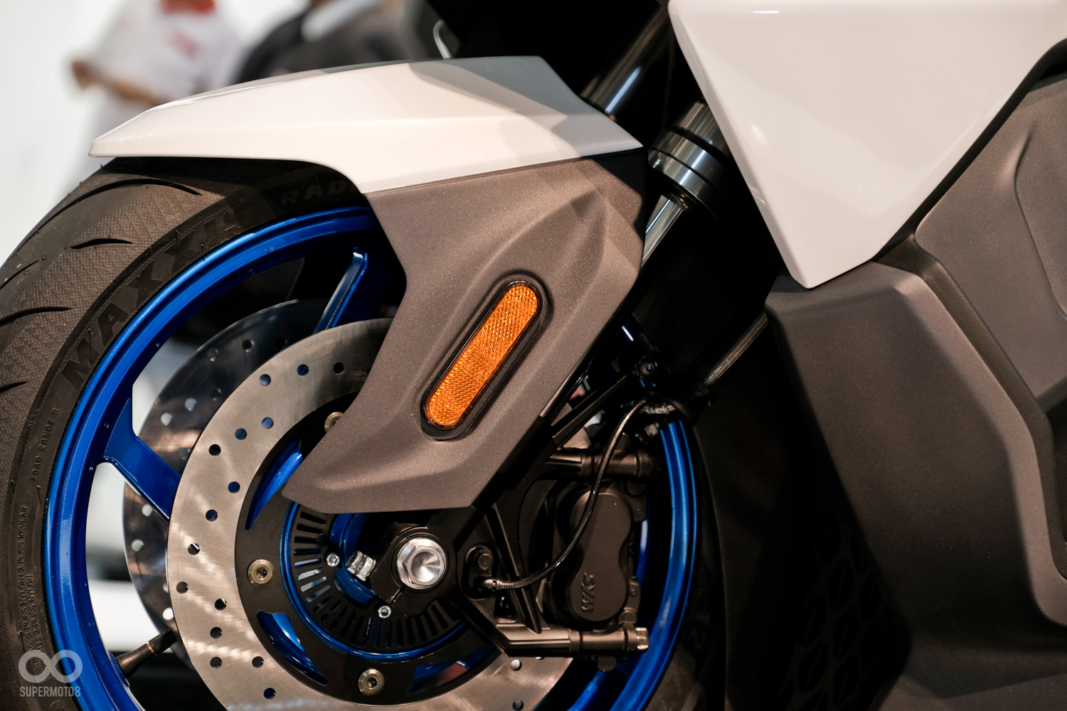 MAXSYM TL毫無疑問是今年的最大看點,搭載一具465c.c.最大馬力39.42p@6500~7750rpm的並列雙缸引擎,並且採用濕式多片離合器搭配鏈條傳動減少馬力耗損,懸吊使用前倒叉搭配後單槍多連桿配置,前後配種50:50軸距更是短了TMAX一截,只有1,550mm,明顯的運動取向挑逗著武鬥派騎士的味蕾,不過465c.c這樣的排氣量對於台灣市場實在尷尬,未來是否會有所調整是我們所關注的重點。