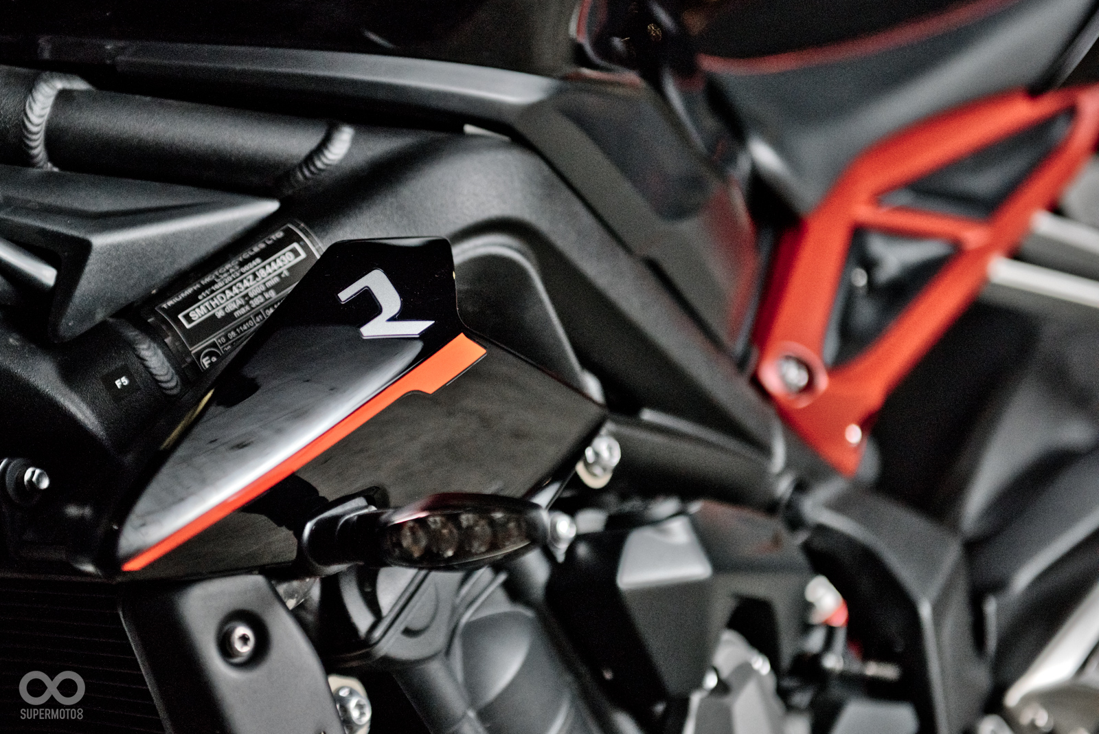 造型上Street Triple 765維持了家族一貫的雙燈造型,延續大哥Speed Triple轉趨圓潤變革,造型變得更為流線,緊緻的佈局、曼妙的腰身、短翹的車尾,加上一雙迷的水亮大眼,不同於多數性能街車的陽剛冰冷,Triumph所塑造的Street Triple多了幾女性化分柔美與溫度,而這也是他令人印象深刻的原因之一。
