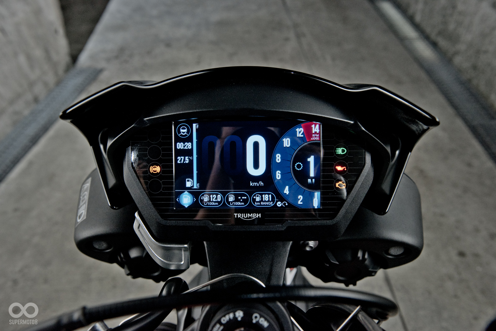 除了一如往常的高質感,新一代的765在科技方面更是如同昇華一般,一口氣踩上了頂尖,全新5吋TFT高反差全彩儀表板,絢麗的外觀下功能更是豐富,除了擁有三段動力模式,ABS與TCS也都具備了可調功能,加上四種可編輯的騎乘模式選擇之外,儀表板本身還有三款風格可供選擇,此外還有夜間模式,讓絢麗的儀表板在夜晚也不顯得刺眼,功能之多但操做卻非常簡單,只要透過左手的五向搖桿便能輕鬆調整,若說這是當今最優秀的儀表設計,可一點都不為過。