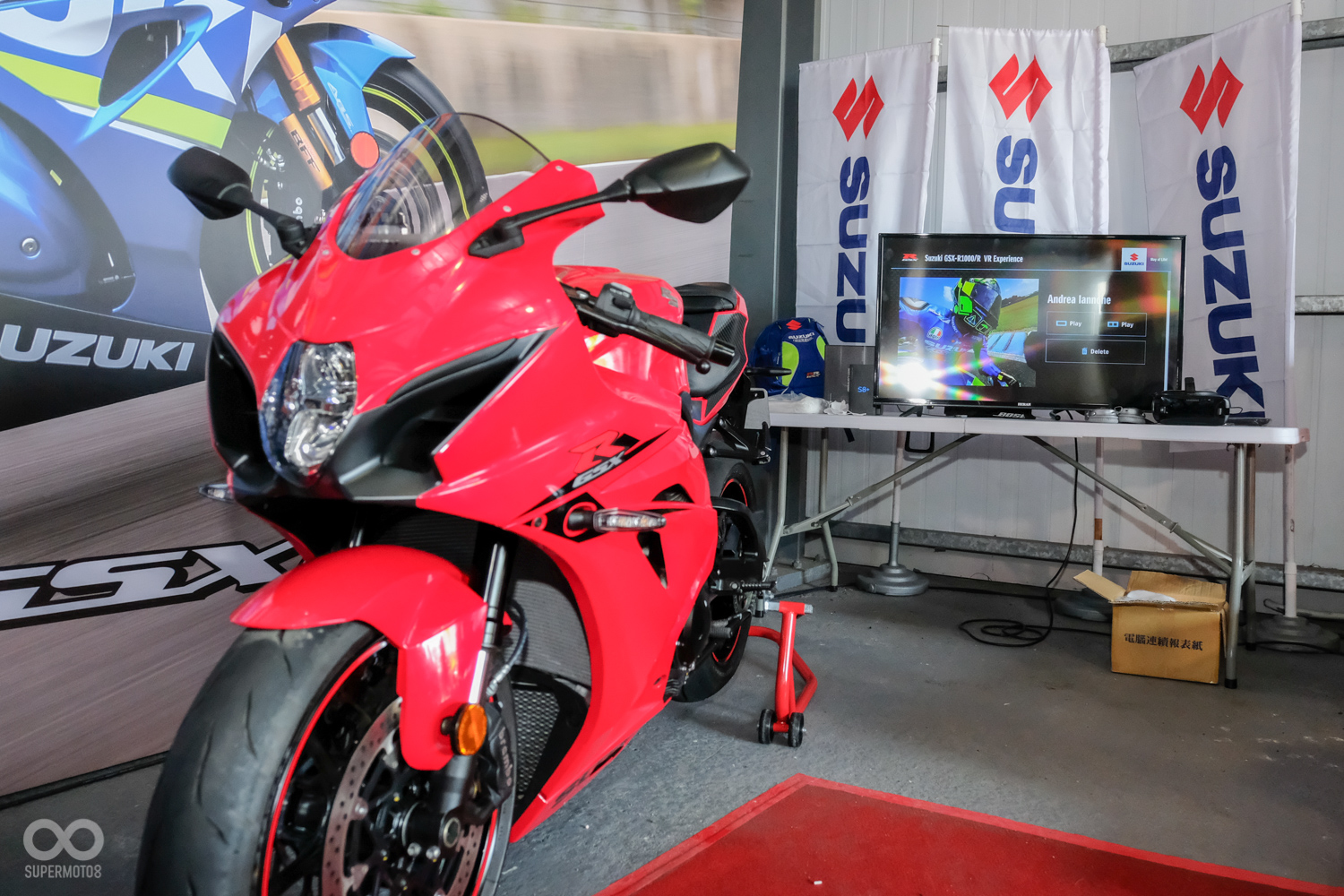 在活動會場特別準備了GSX-R1000搭配頭戴式VR裝置與能夠完美還原引擎聲的BOSE耳機,民眾可以透過實際跨坐GSX-R1000搭配上VR裝置中所錄製的菲利浦島賽道影片,體驗MOTOGP車手所帶來的第一人稱視角賽道體驗,由PIT區出發一路殺進每個彎道,最後在享受大直線的衝刺,由專業的車手體驗傾角、俐落過彎、與大直線的狂暴聲浪所帶來的快感。