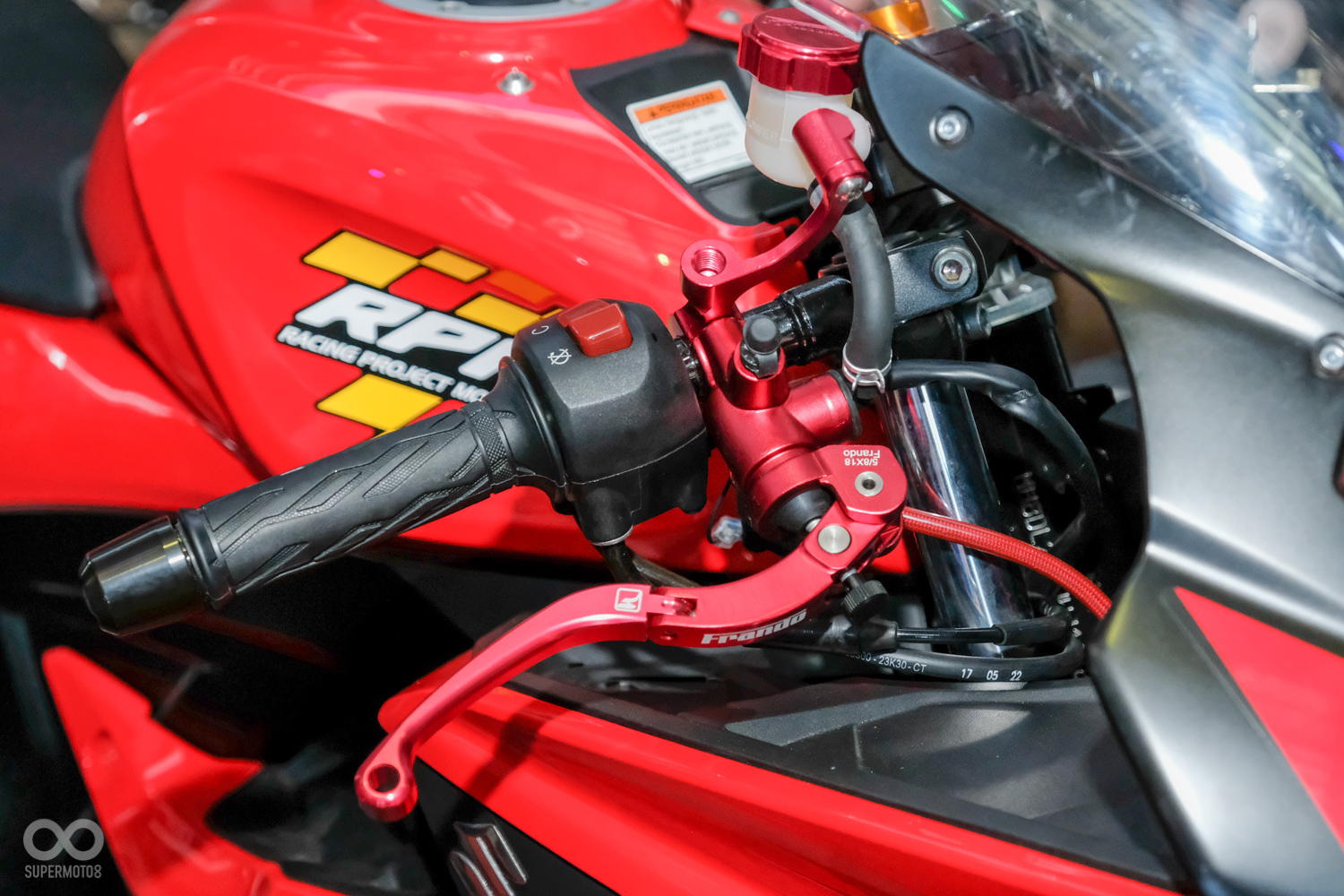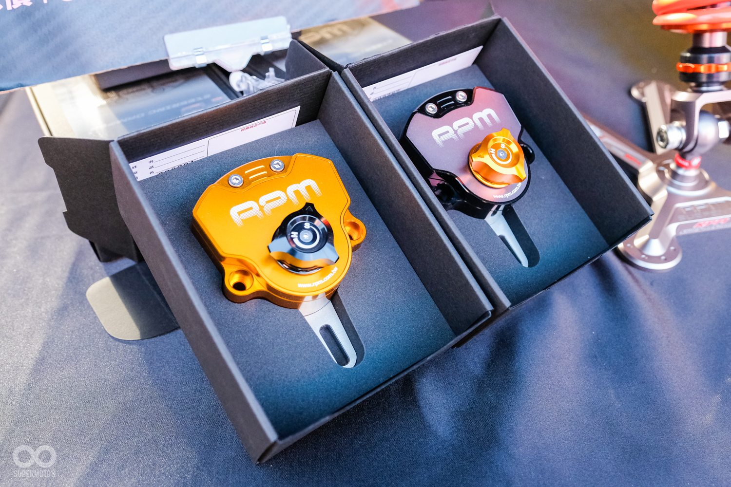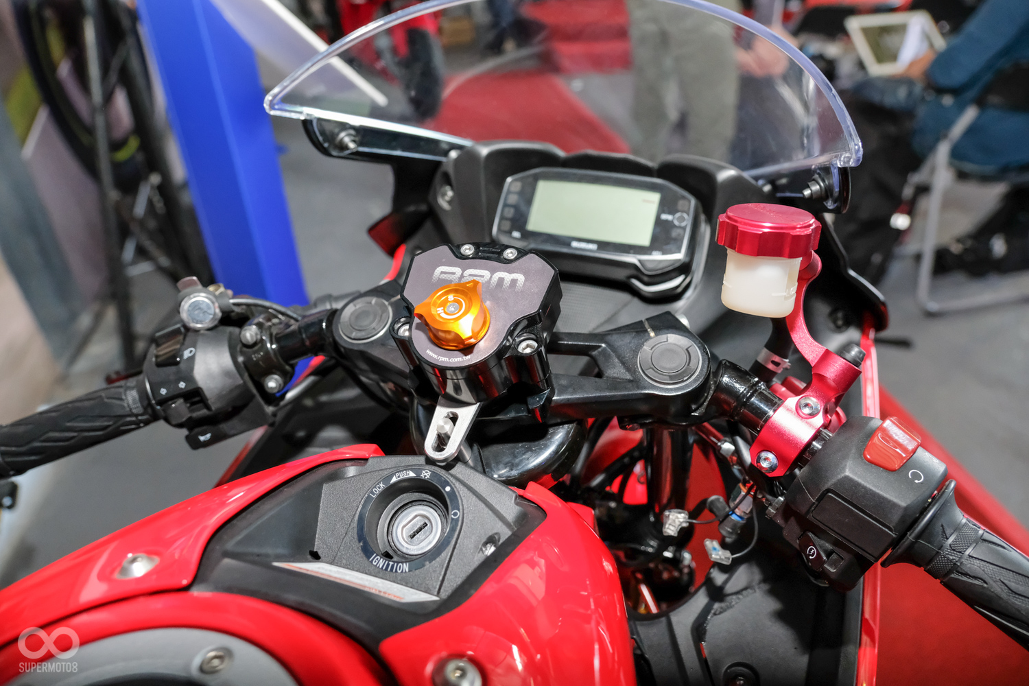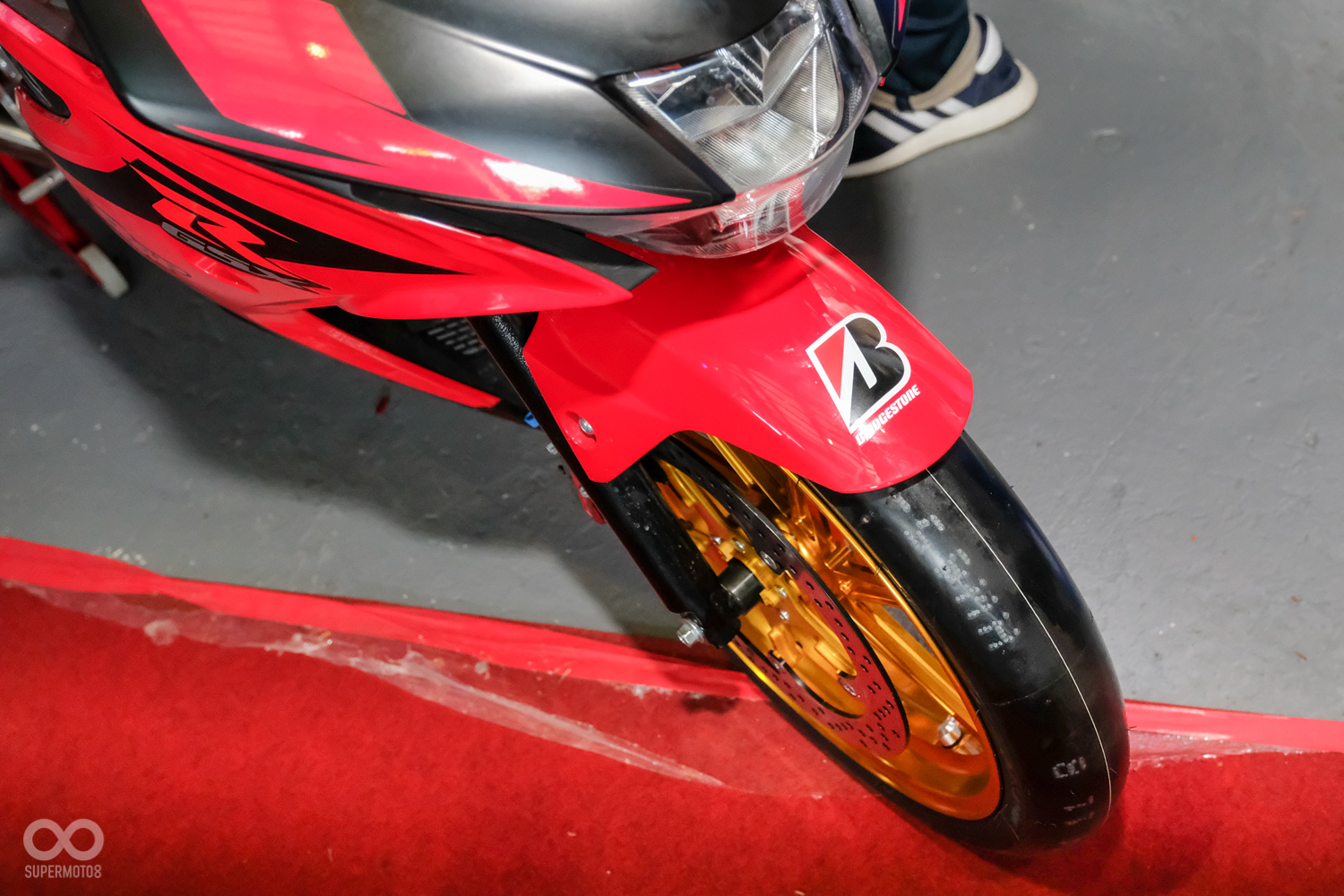 在國內極受歡迎的GSX-R150/S150原廠展示了兩輛改裝車,集結國內多家改裝大廠細心打造,以GSX-R150為藍本打造的Racing Concept搭載BRIDGESTONE V02賽道光頭胎、武川提供的輕量化鍛造輪圈、武田腳踏後移、FRANDO煞車卡鉗及金屬油管與320mm煞車碟盤、RPM軸心式防甩頭、RPM氮氣全可調後避震、ARACER競技版改裝電腦及快速排檔系統、吉村YOSHIMURA碳纖維排氣尾管及手工前中段排氣管,RIEDA後照鏡底座飾蓋..等等, 多樣化的改裝品似乎也告訴車主,未來這輛車有著極大的改裝樂趣與多樣化的套件支援。