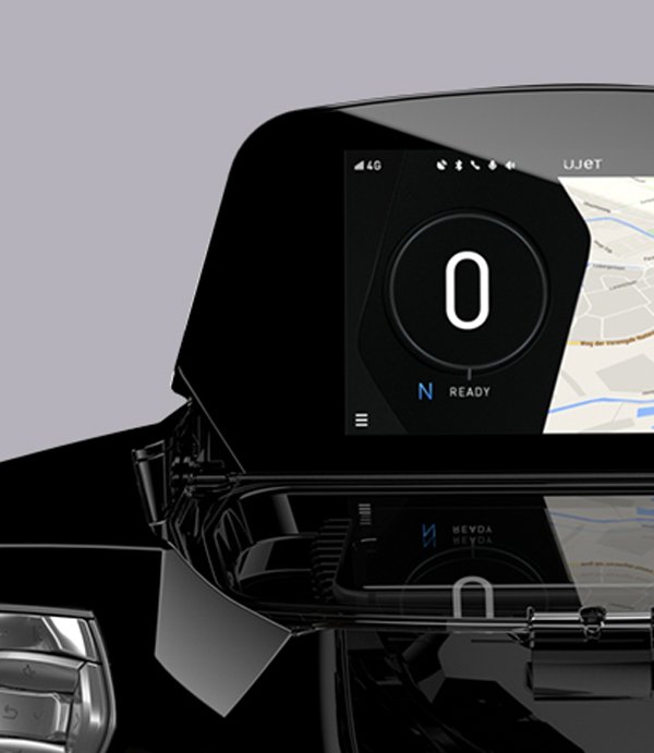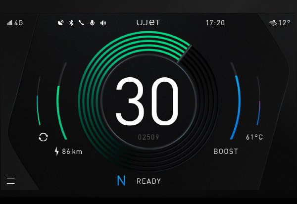 當然,與智慧型手機連結也是UJET 的必定特色,無論是iOS或Android都能透過藍芽/wifi/3G等方式連接到車輛,車主可在翻摺式儀表上用語音或觸控,操作GPS、撥放音樂、察看手機訊息等動作,操作介面更是簡潔直覺,十分人性化。