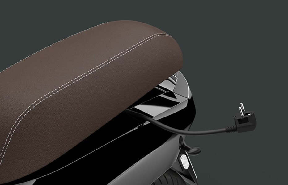 電池位於座墊下方,可單獨拆下與車身分離,用一般行李箱方式推拉。電池的續航力最大可到150 km,最快兩小時就能充飽電。車上甚至有節能、一般及運動三種騎乘模式可選,剎車過程中也會回收部分熱能轉換成電,讓電池續航力盡量提升。