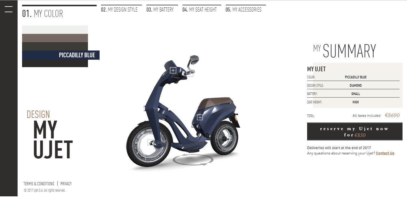 目前UJET 已開放預訂,定價約9,000歐元。買家還可上網替自己的車輛做些個人化選擇,例如更改顏色、座墊高度或電池容量等等,約四週即可交車。比起在上一屆CES發表,卻遲遲未有下文的電動摺疊滑板車,UJET 應該是更快的選擇。