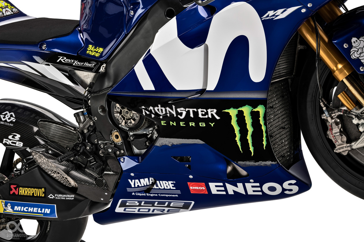 值得注意的一點是這回展出的新車並沒有裝上空力套件,而是以單純的整流罩形式登場,但這不代表YAMAHA今年不打算使用定風翼,畢竟在去年底的瓦倫西亞測試中,Vinales就已經試過新款的套件,並且給予了相當正面的評價,相信在的雪邦測試中我們就會看到正式版的定風翼整流罩。