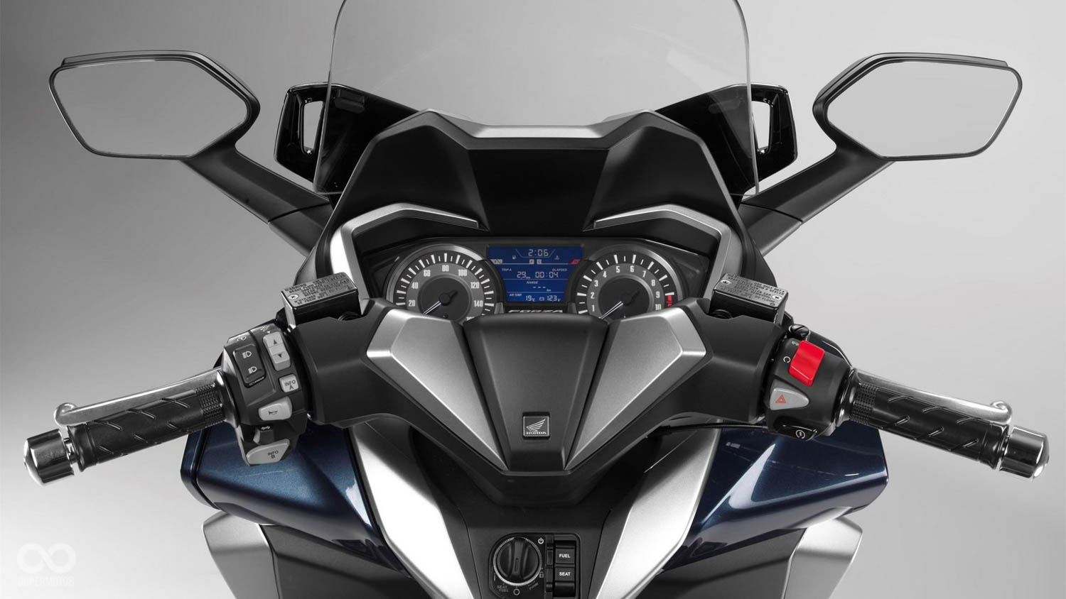 除了外觀科技感滿點,配備上也同步跟進,新一代的Forza300搭載了現在火紅的Keyless感應鑰匙之外,本田招牌的HSTC循跡技術也同步導入,此外電動風鏡這樣的豪華配也赫然在列,當然ABS也是不會少,單看這些高檔的配實在很難想像,這竟然只是一台279cc的黃牌大羊。