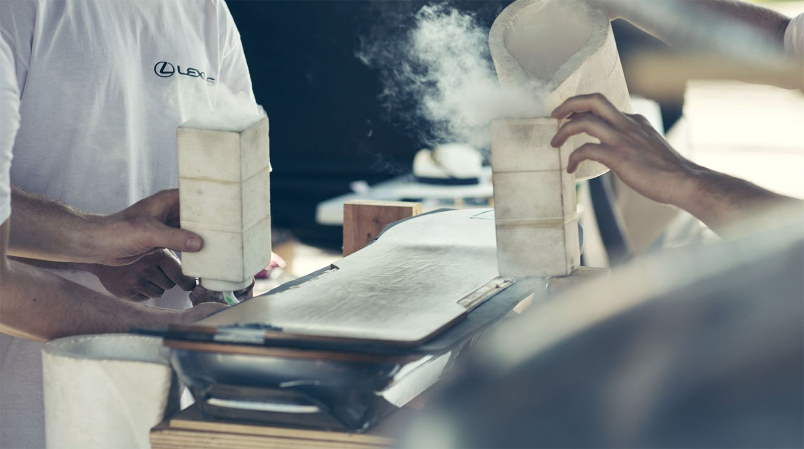 Lexus用木頭打造一個精美的仿水泥滑板場,在懸浮滑板需要經過的路徑下埋入磁鐵,其中設置跳台水池與U型板,以增加影片的豐富度。