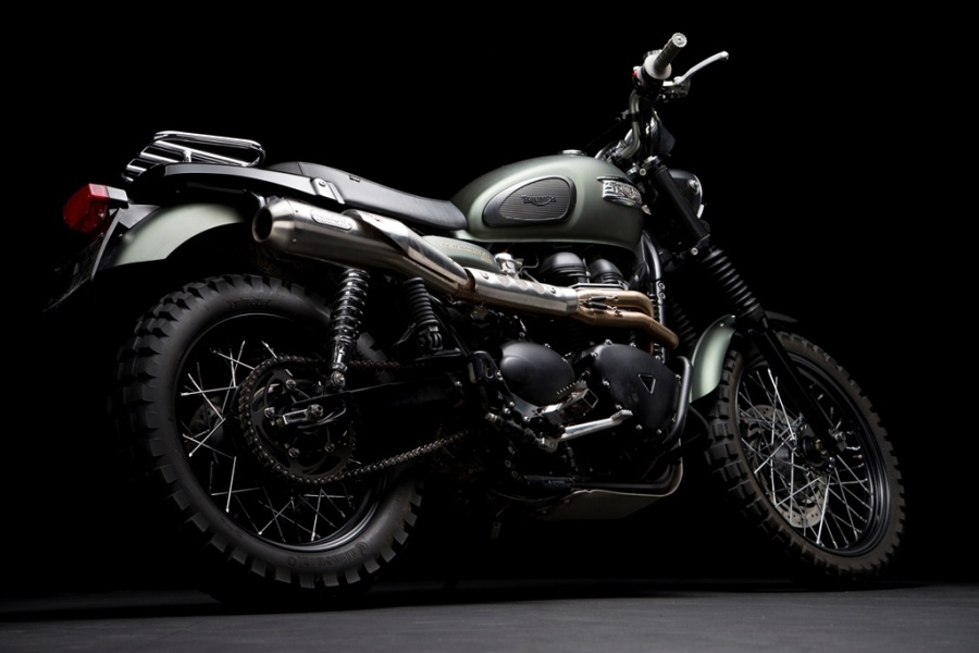 今年暑假熱賣的大片侏羅紀世界,男主角騎著Triumph Scrambler與四隻迅猛龍在叢林追逐的畫面,讓人印象深刻。男主角的形象與軍綠色的Triumph Scrambler完全契合,人車都散發濃濃的粗曠男人味。